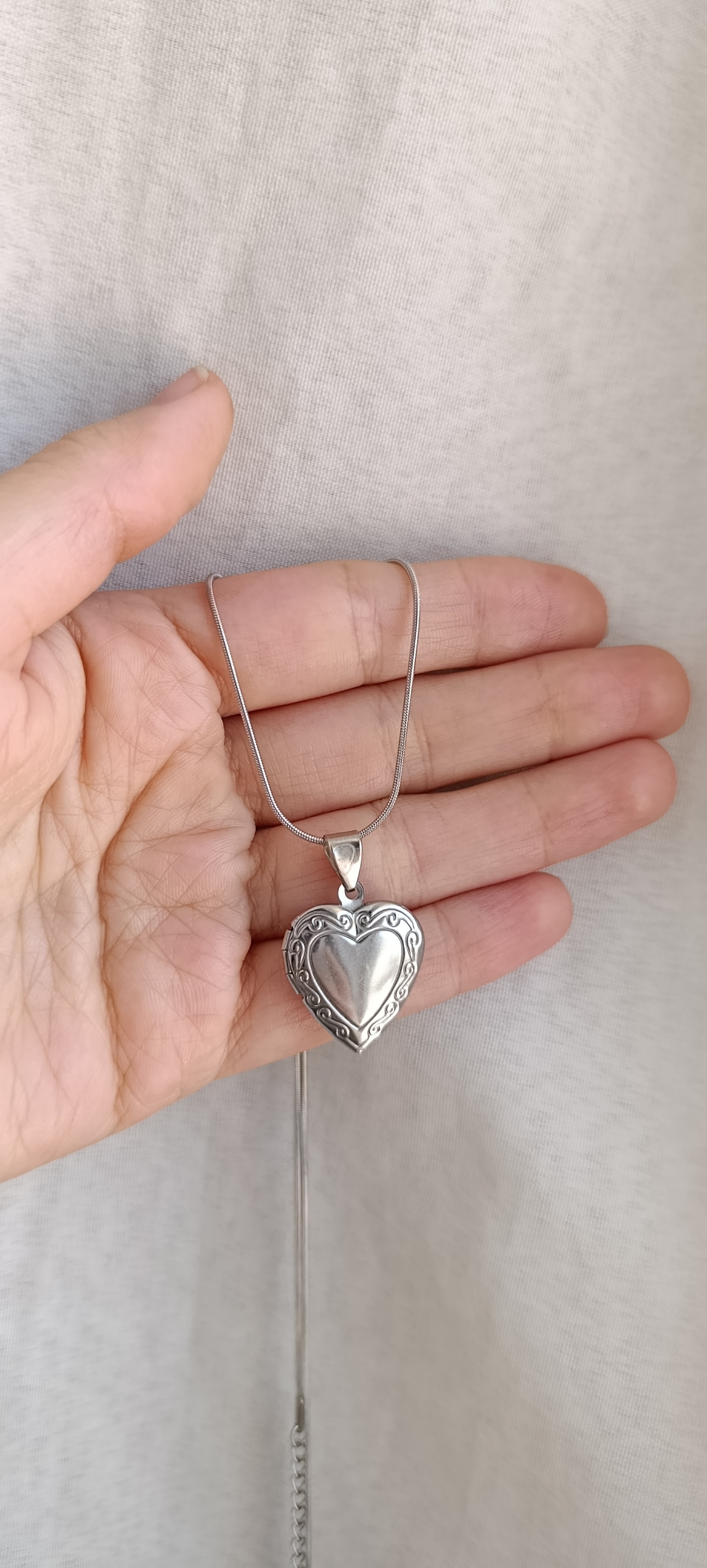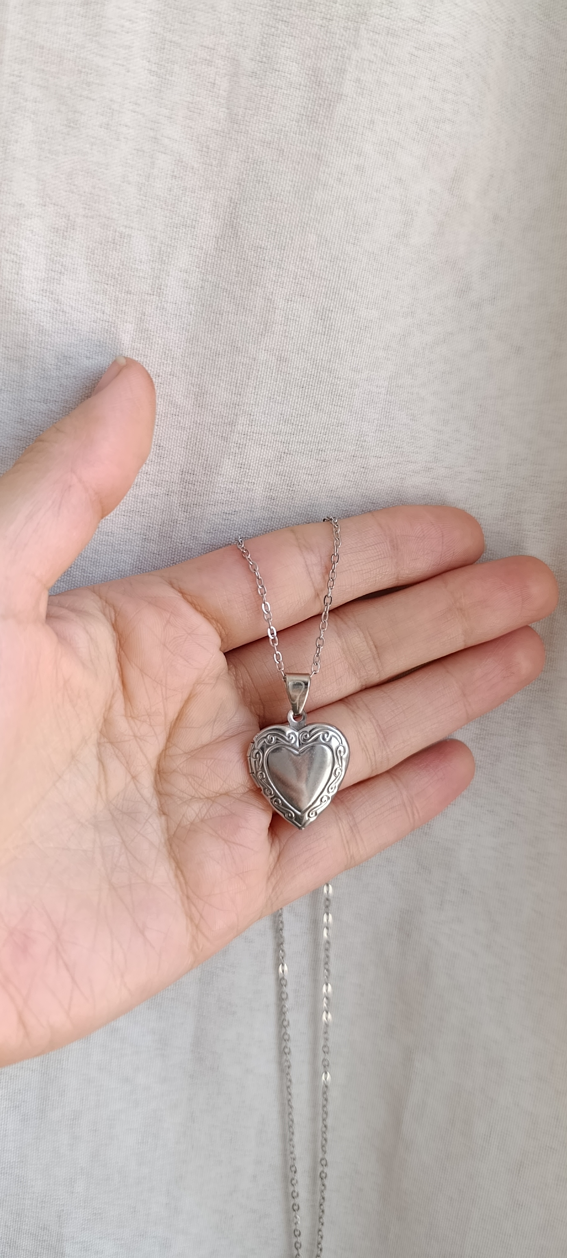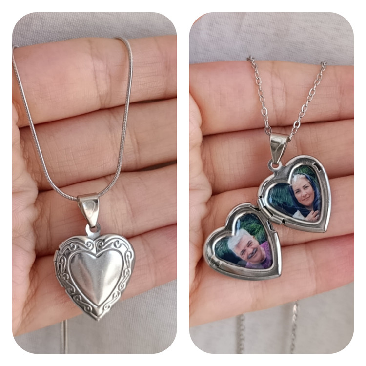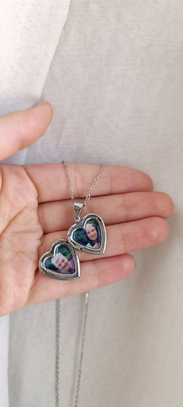 گردنبند لاکت استیل قلب ظریف نقره ای با چاپ عکس رزینی خرید قسطی