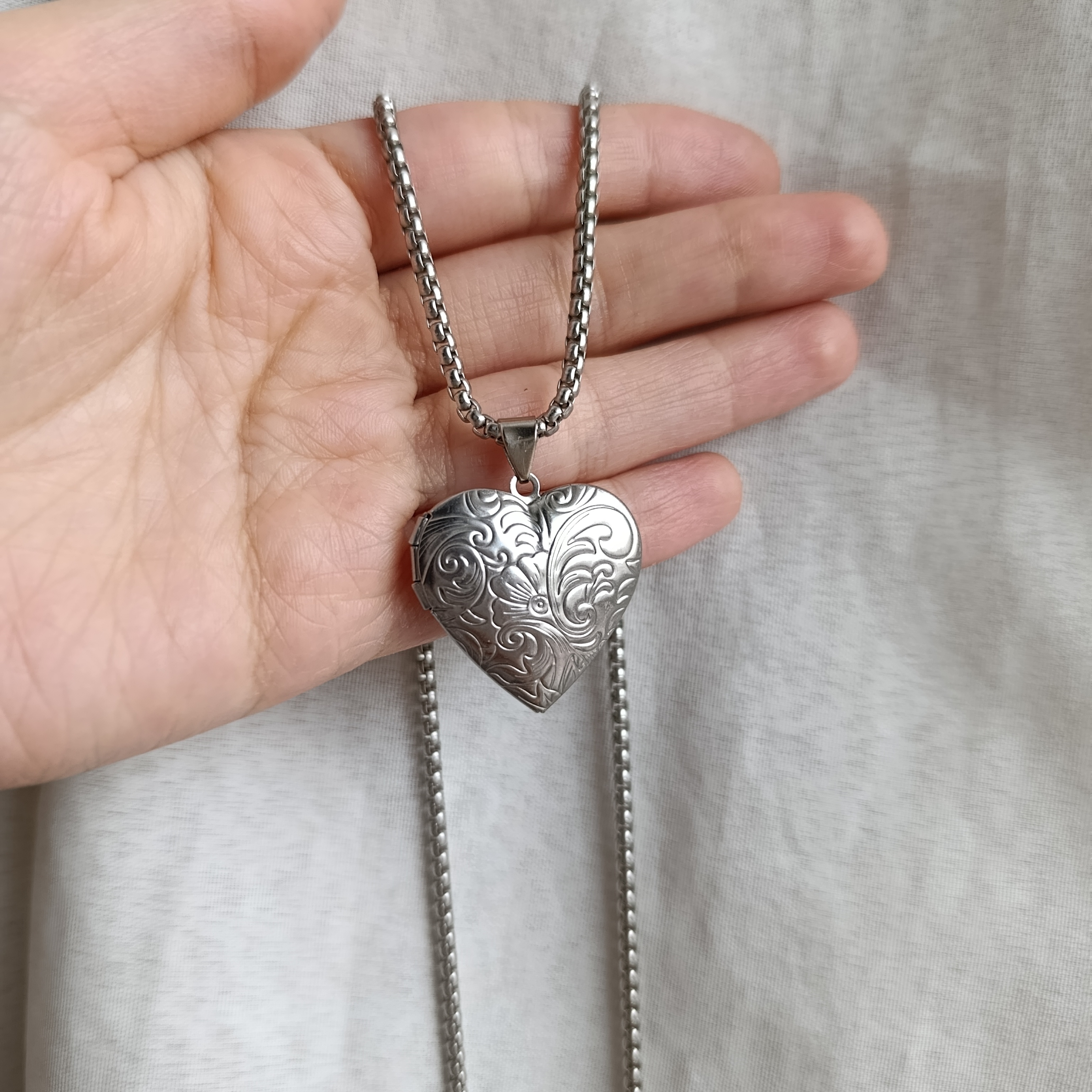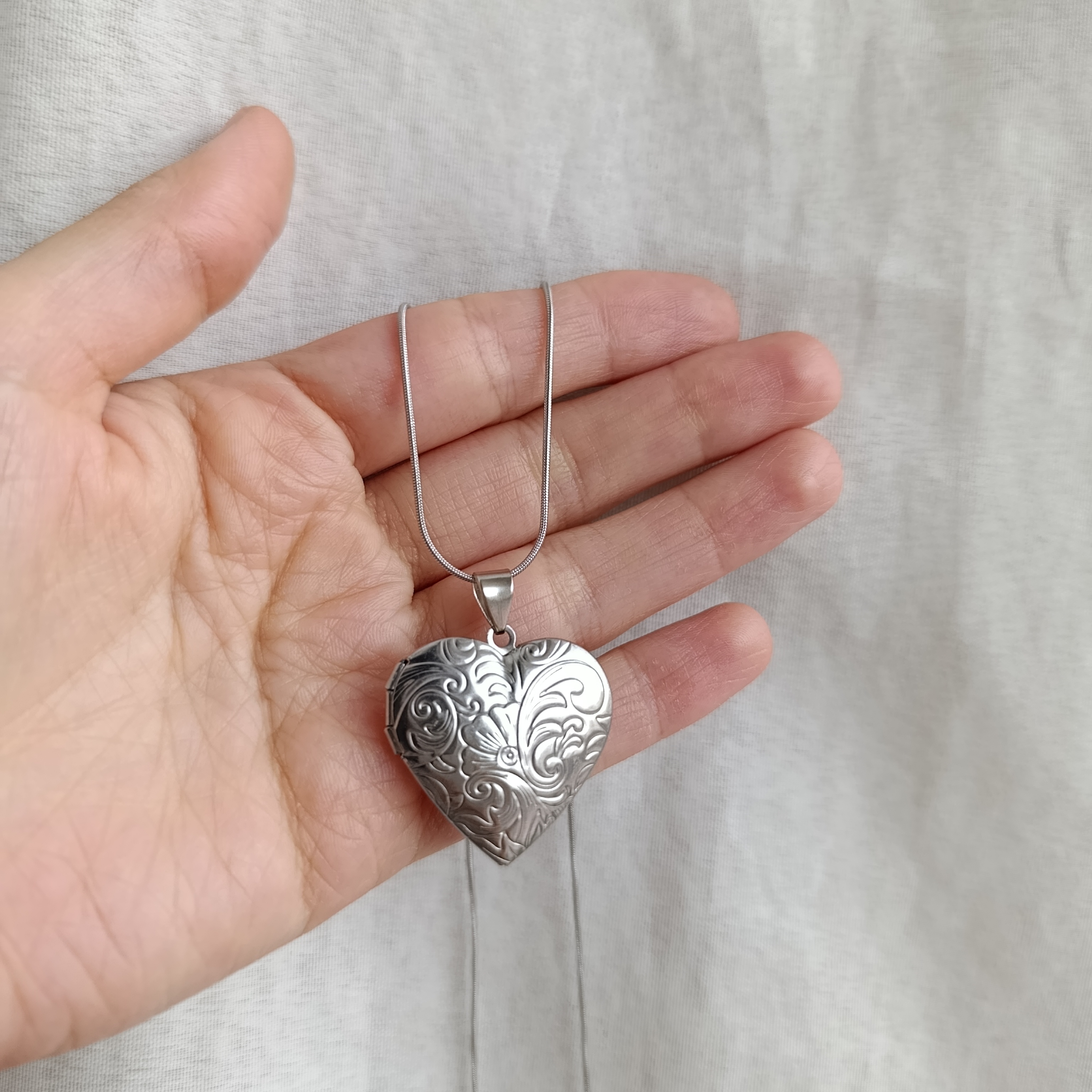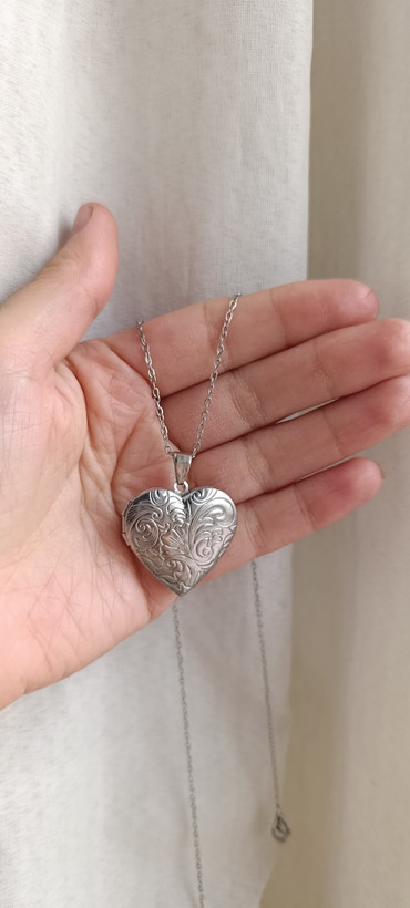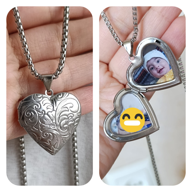 گردنبند لاکت استیل قلب نقره ای با چاپ عکس رزینی خرید قسطی