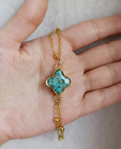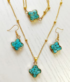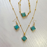 نیم ست زیورآلات سنگ فیروزه زنجیر برنجی توپی طرح ونکلیف زنانه
