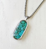گردنبند پلاک و زنجیر مردانه فیروزه استیل نقره ای