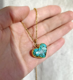 گردنبند طلایی فیروزه طرح قلب ۲ cm با زنجیر استیل دیپلمات