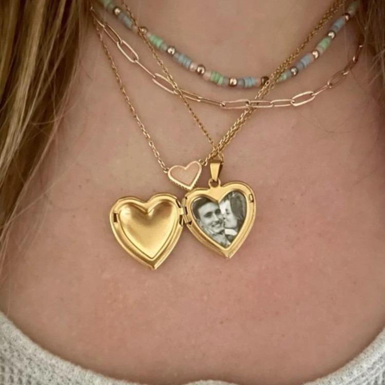 گردنبند لاکت استیل مدل قلبی طلایی همراه چاپ عکس دلخواه شما خرید قسطی