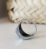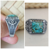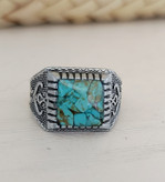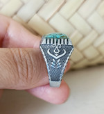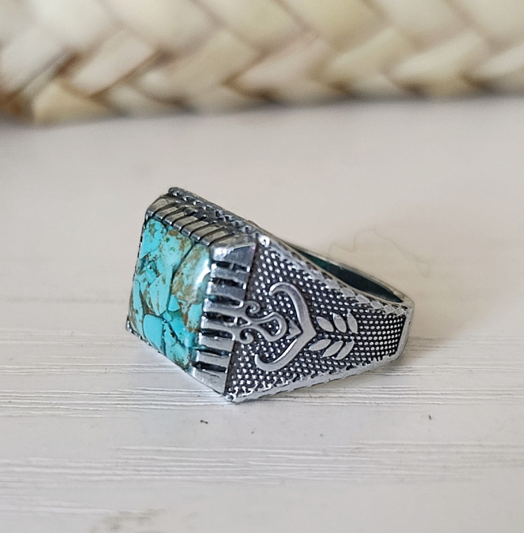 انگشتر مردانه فیروزه با رکاب مان استیل سیاه قلم طرح قلم زنی کد ۰۰۷