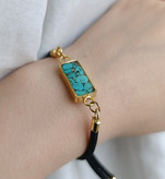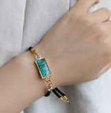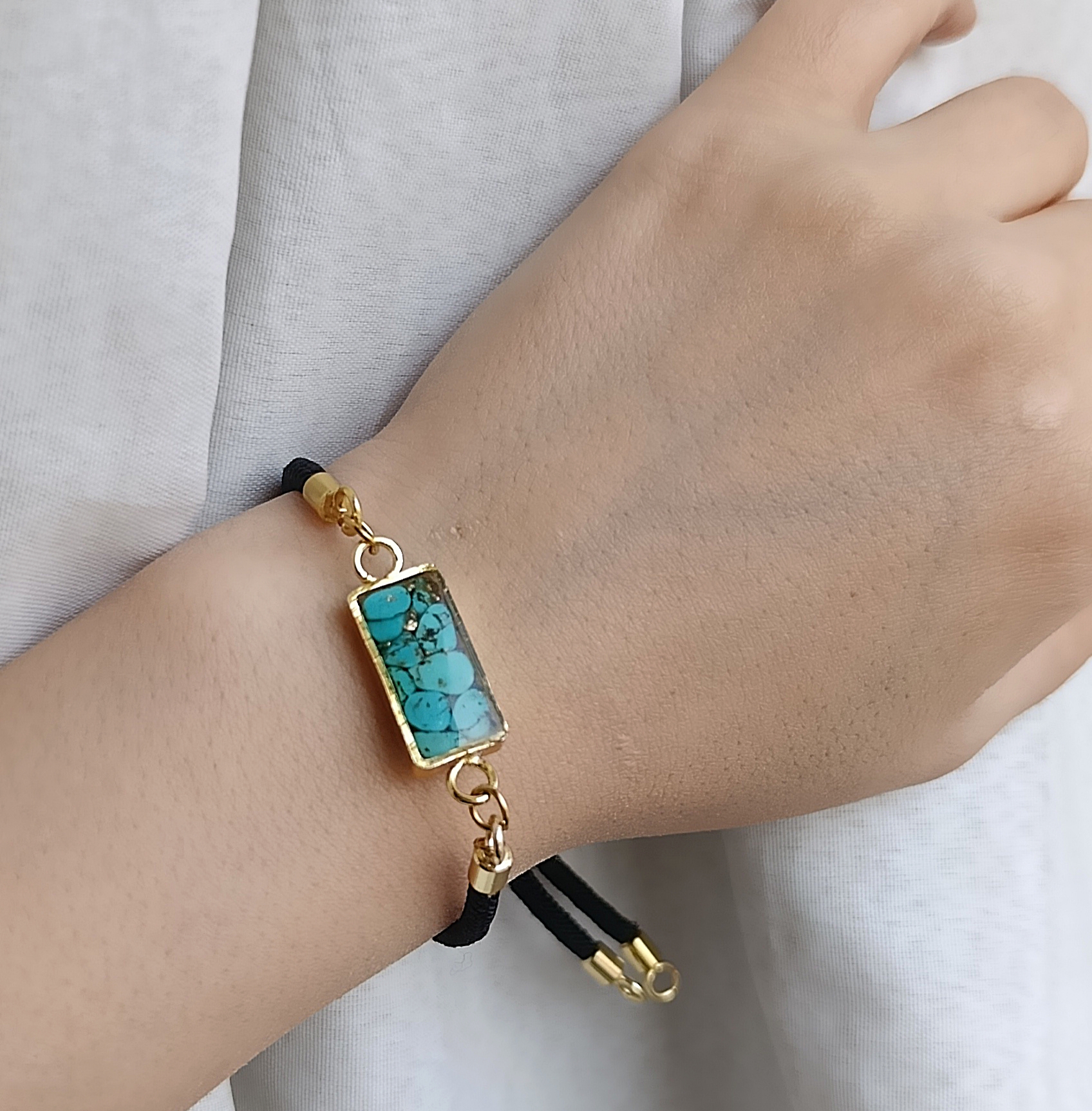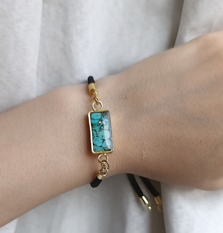 دستبند زنانه و دخترانه فیروزه اصل بند نخی آسانسوری طرح مستطیل کوچک