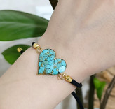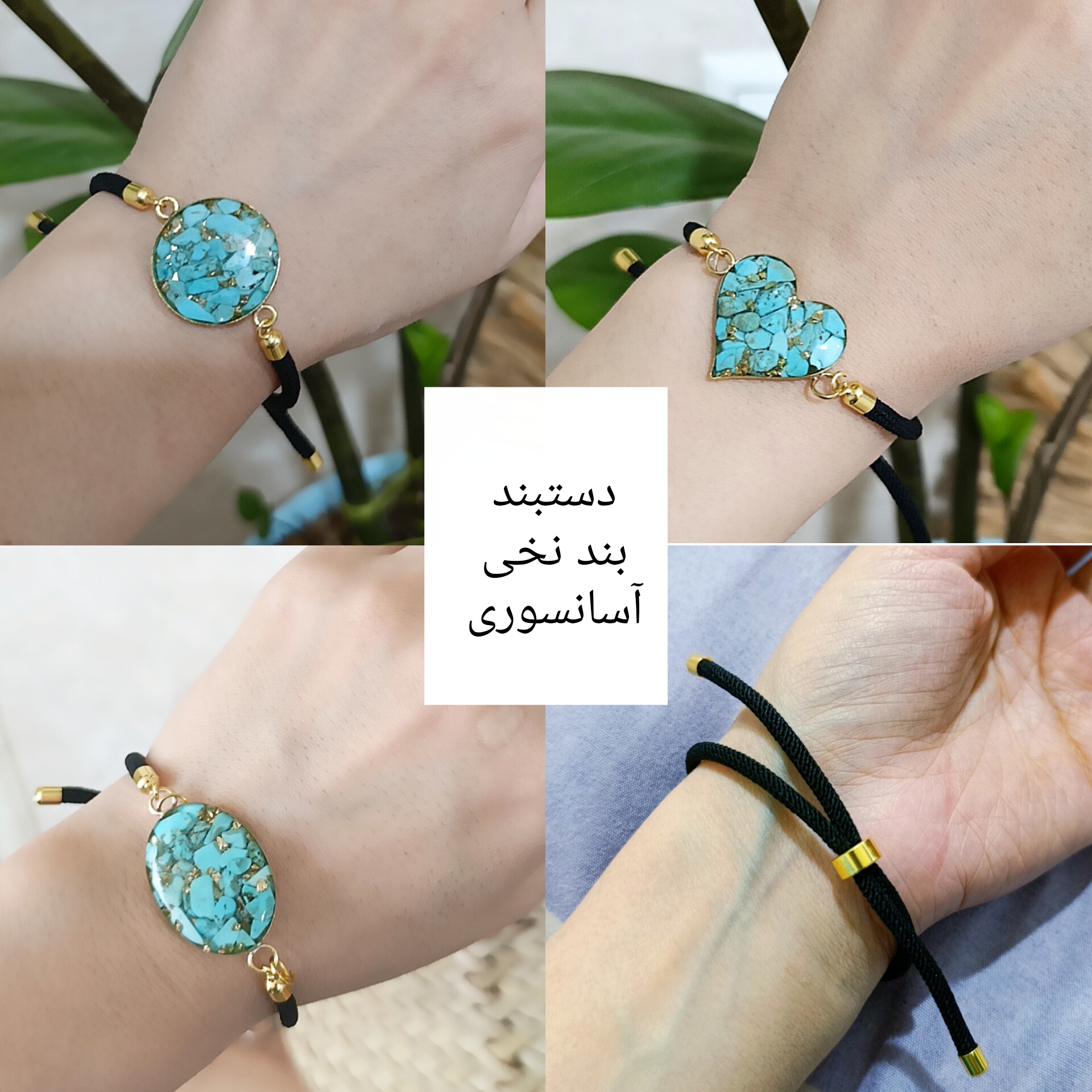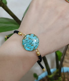 دستبند نخی آسانسوری با پلاک فیروزه