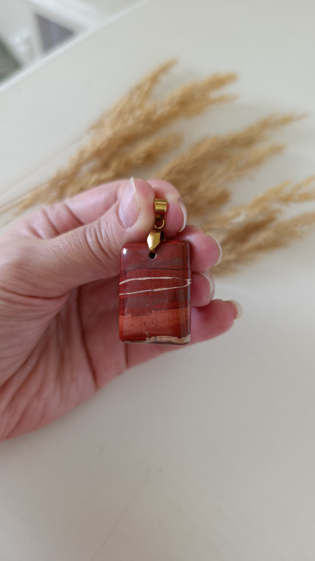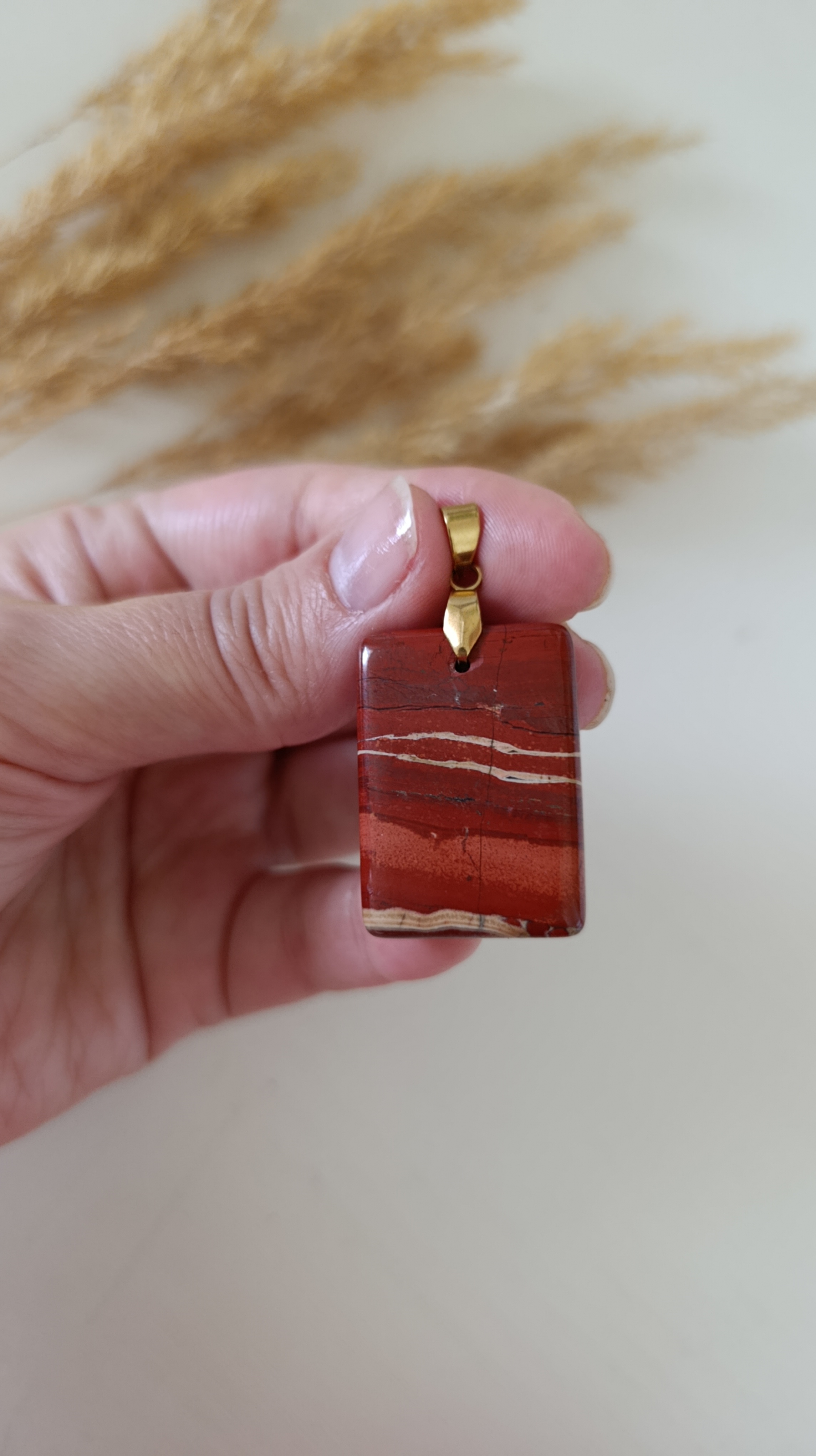 پلاک آویز سنگ جاسپر سرخ طبیعی کد ۳۷