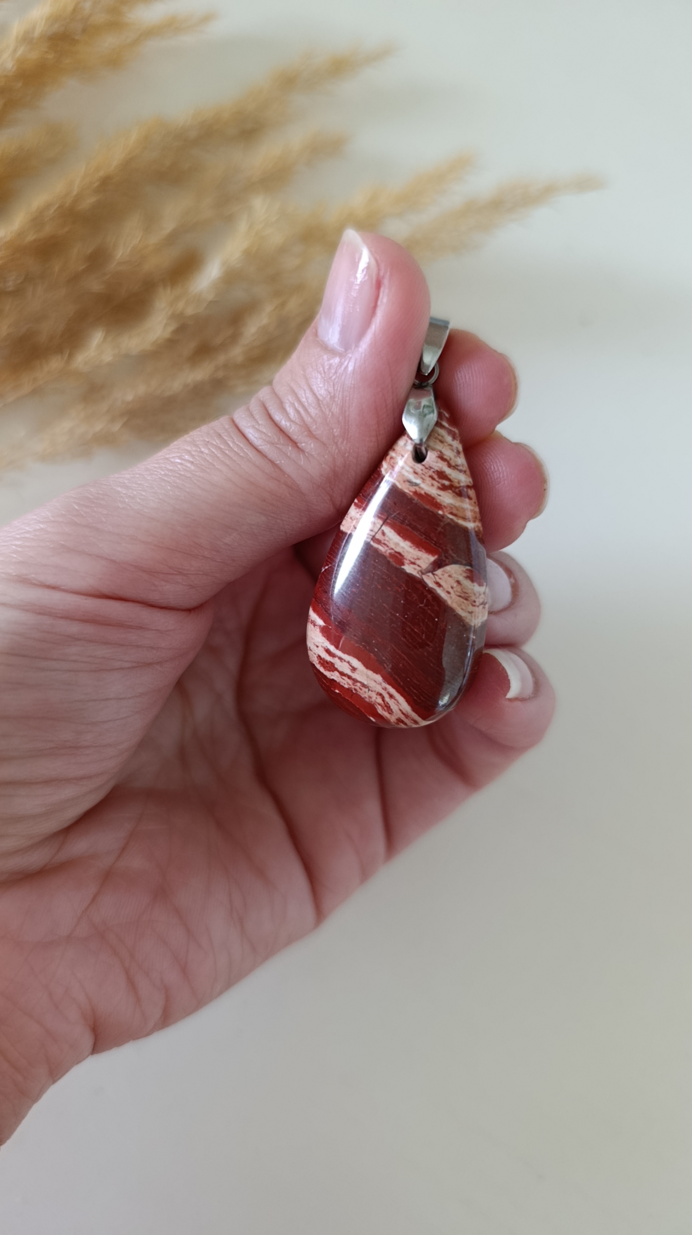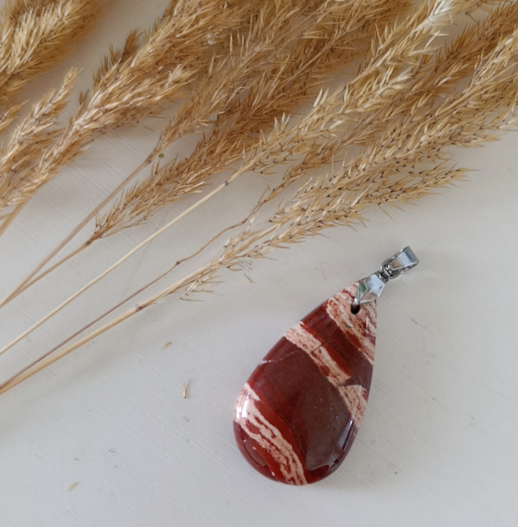 پلاک آویز سنگ جاسپر سرخ طبیعی کد ۳۹