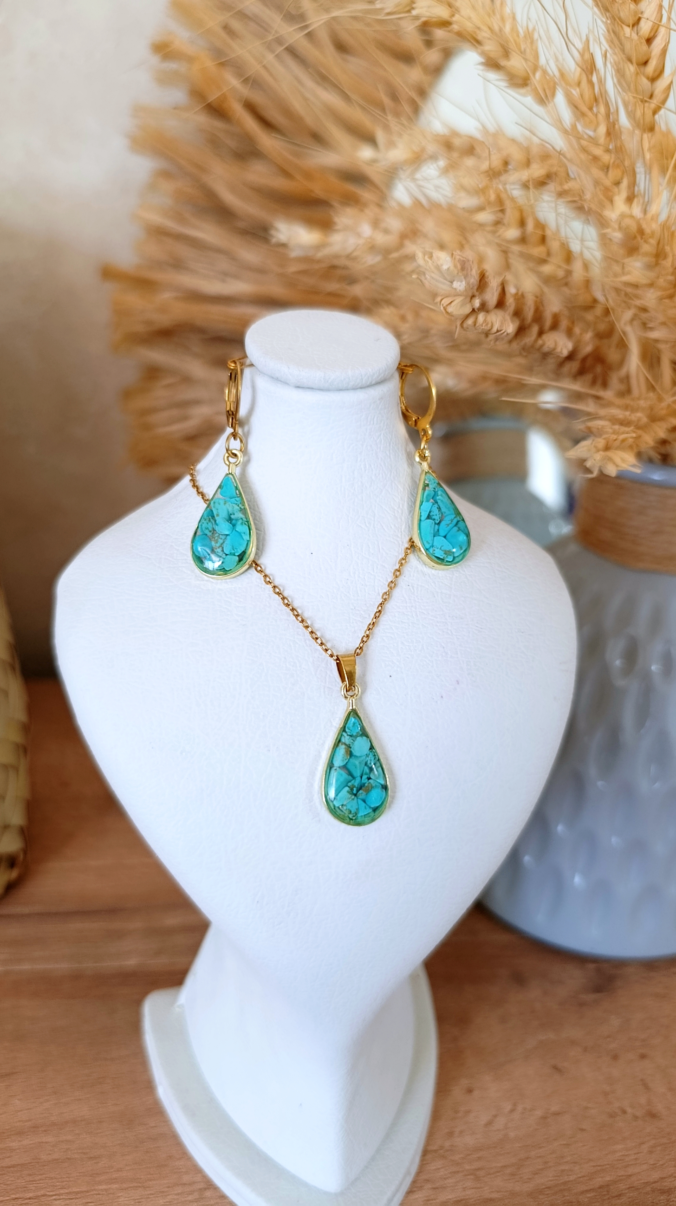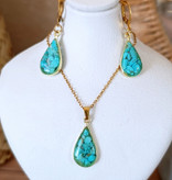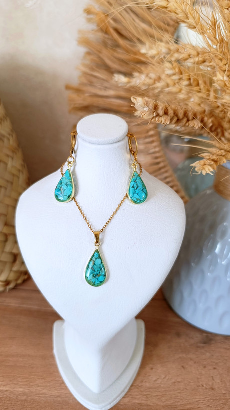 نیمست زیورآلات گردنبند و گوشواره زنانه فیروزه طرح اشکی