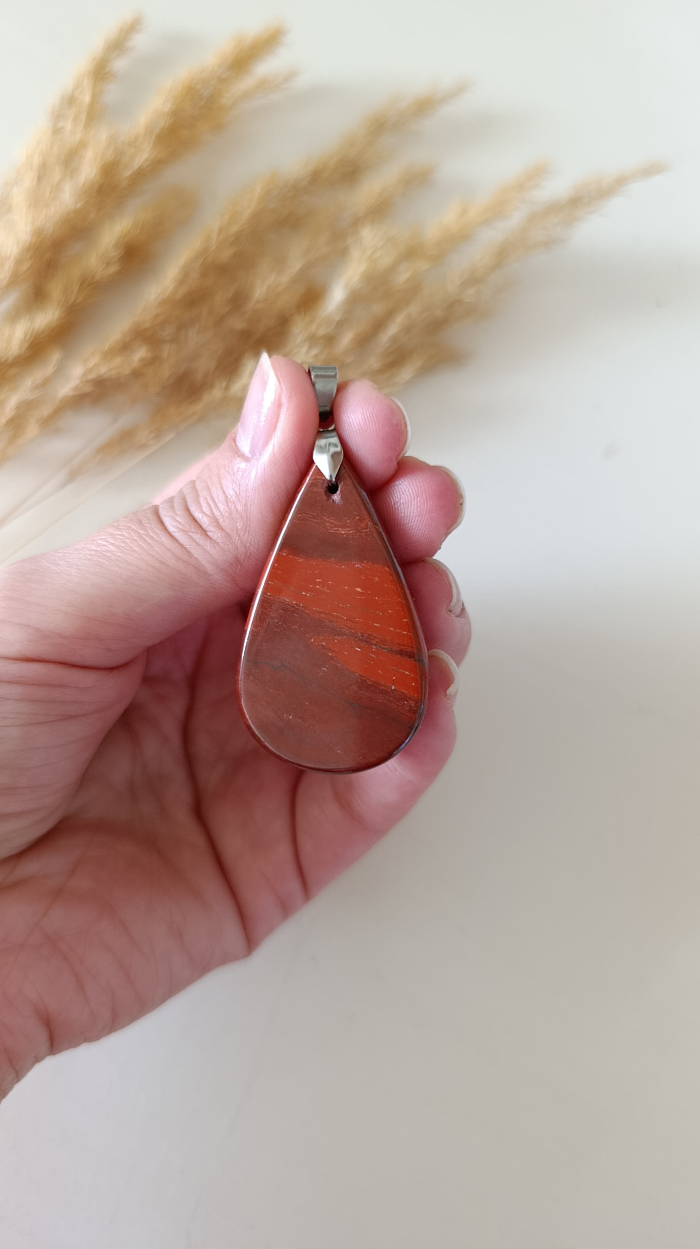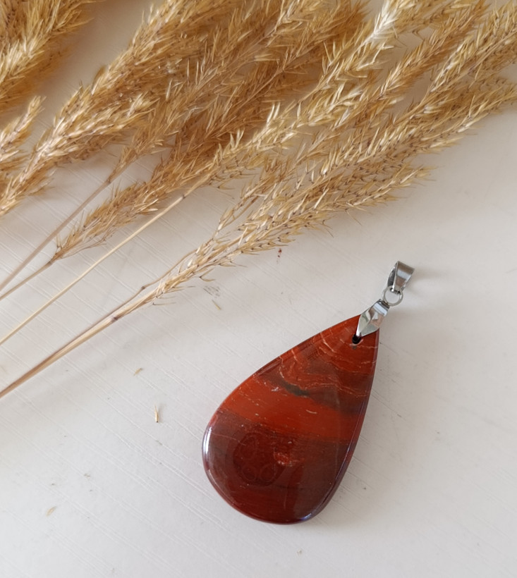 پلاک آویز سنگ جاسپر سرخ طبیعی کد ۴۹