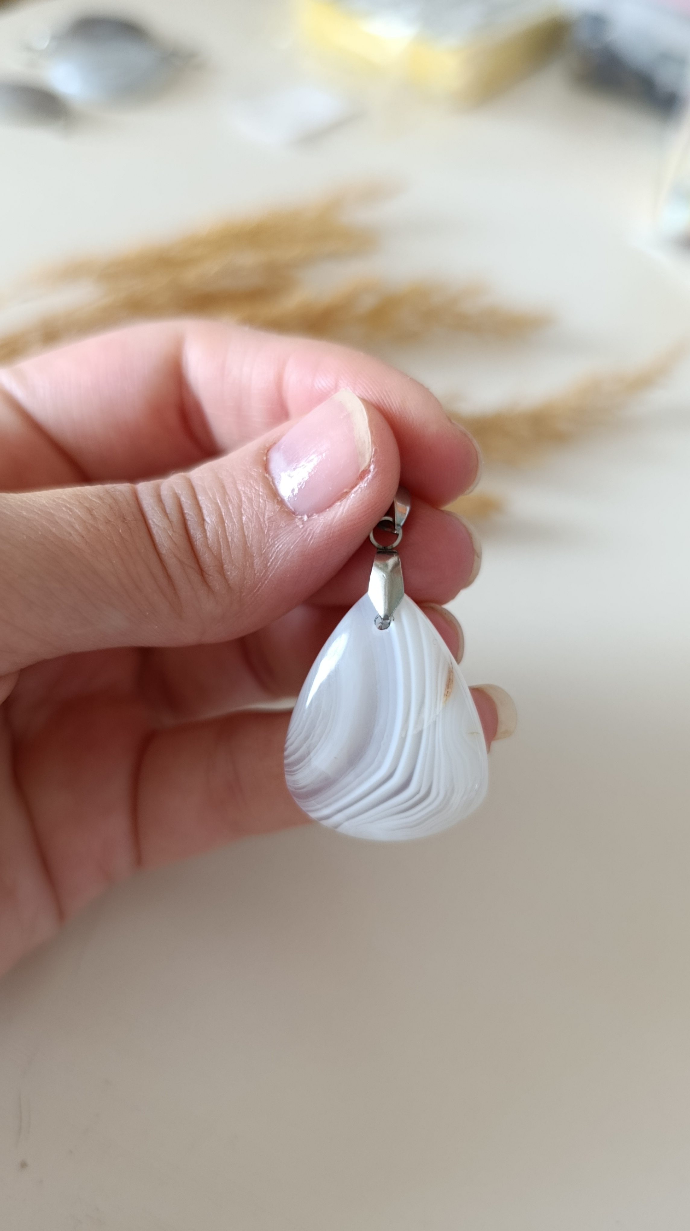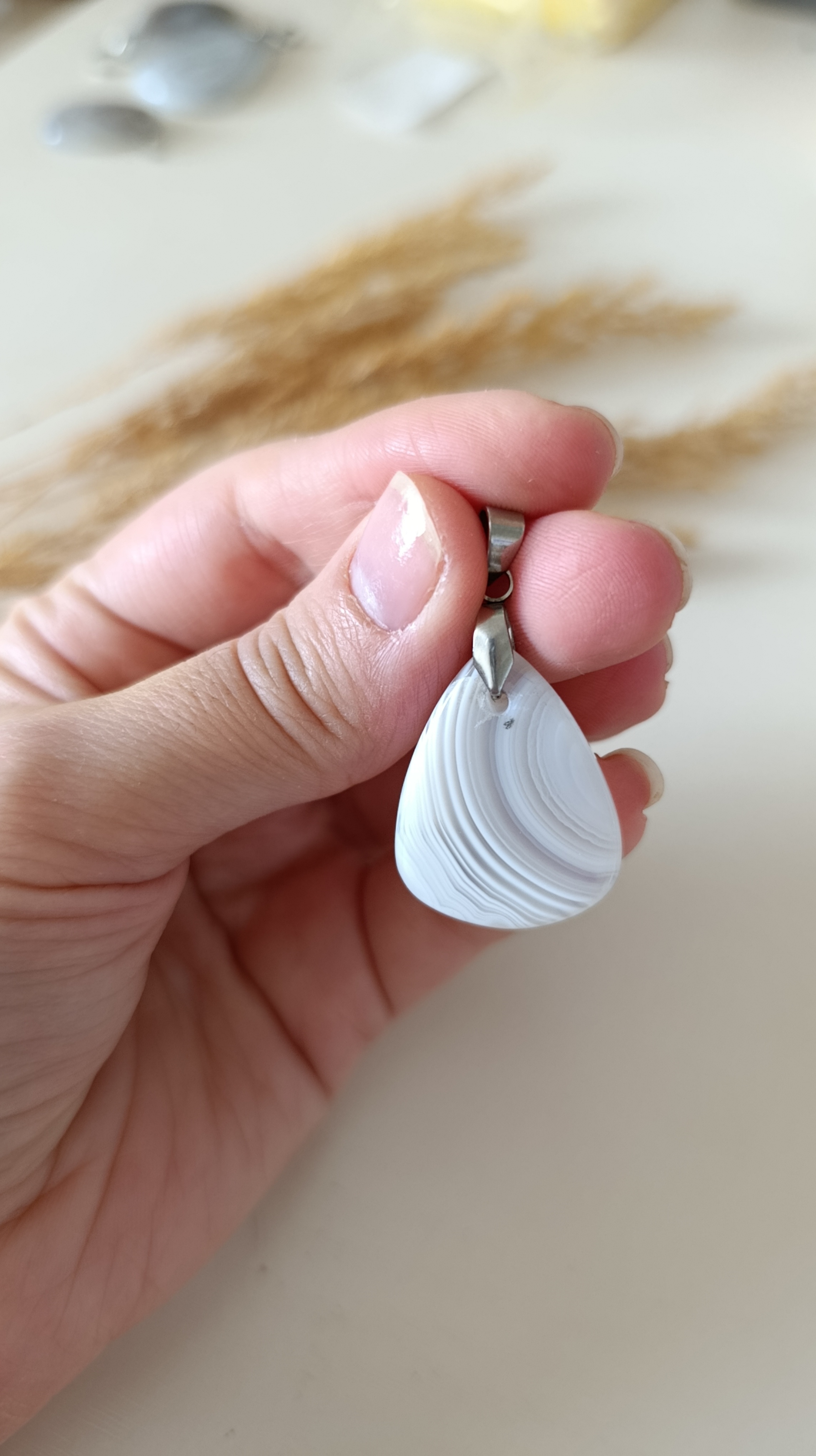 پلاک گردنبند سنگ عقیق سلیمانی سفید کد ۶۴