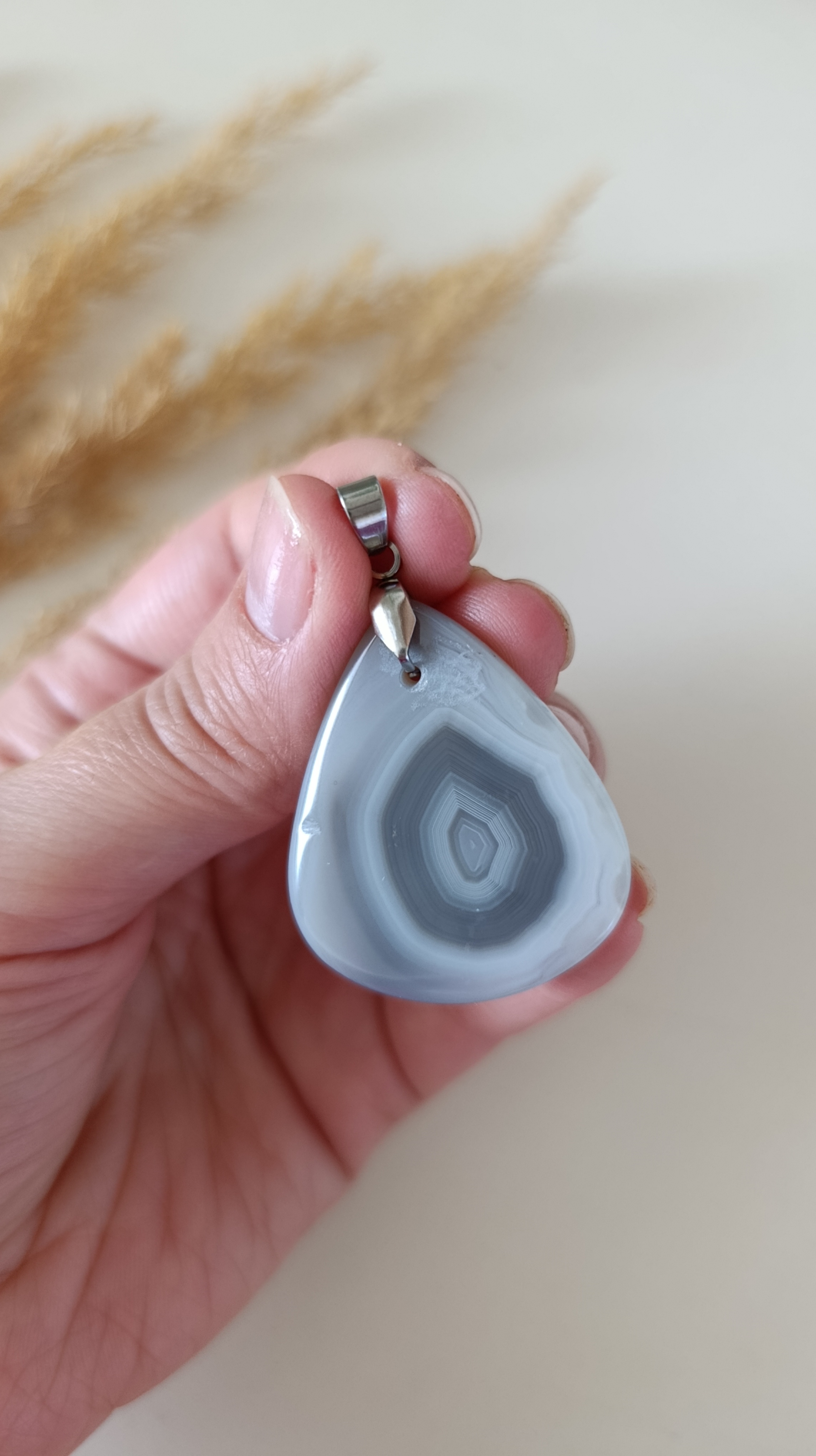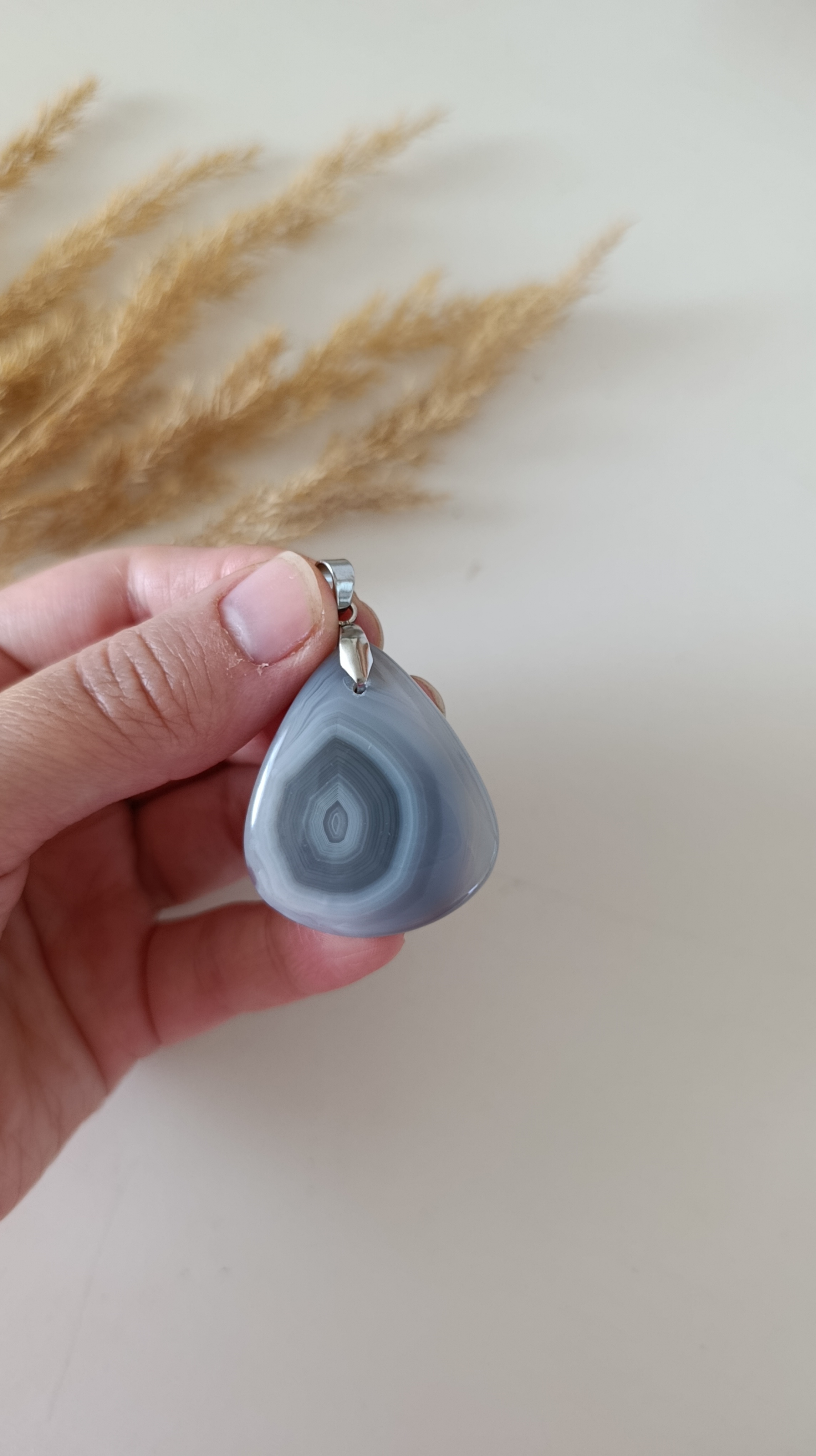 پلاک گردنبند سنگ عقیق سلیمانی سفید کد ۶۵