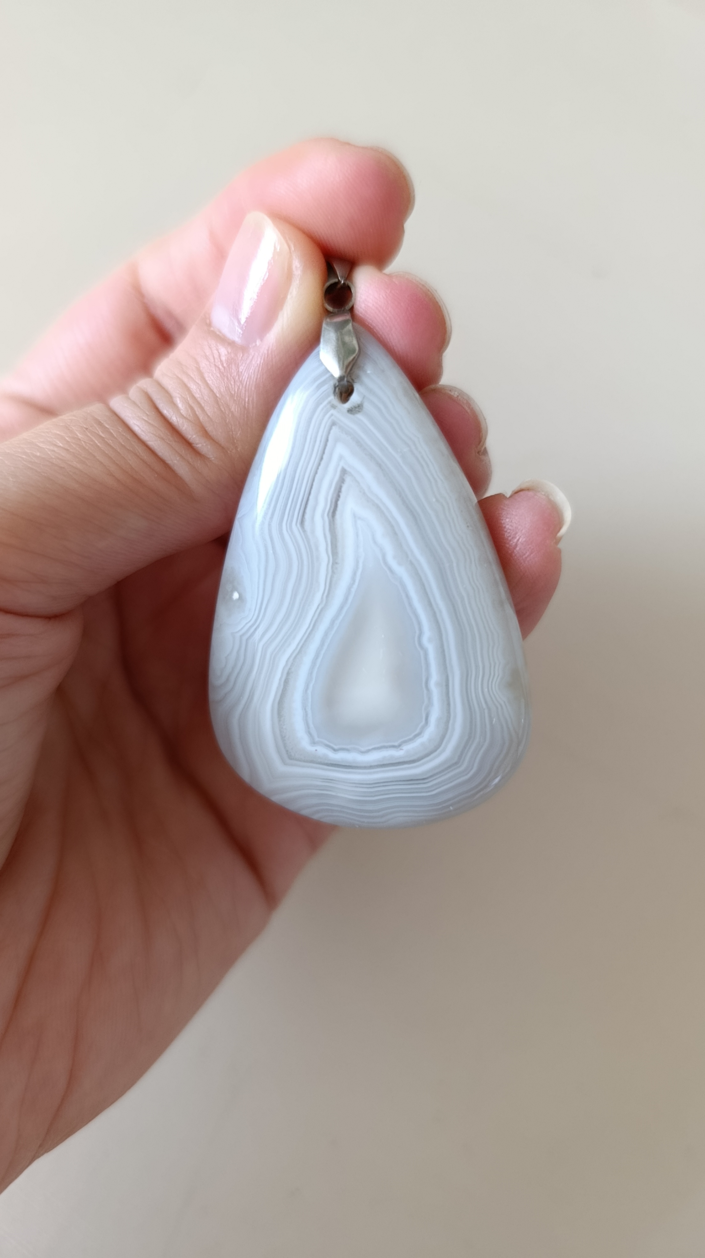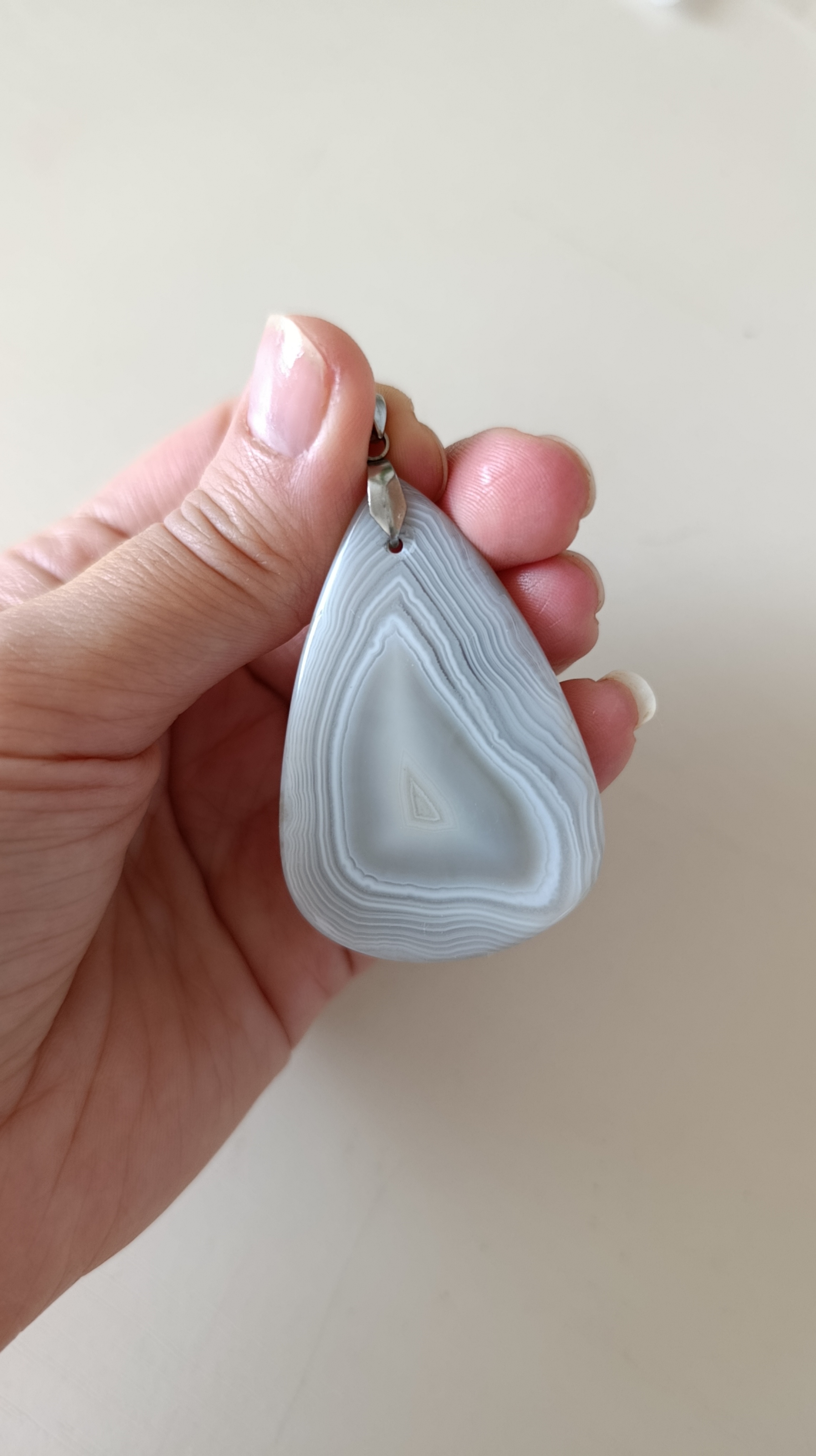 پلاک گردنبند سنگ عقیق سلیمانی سفید کد ۶۷