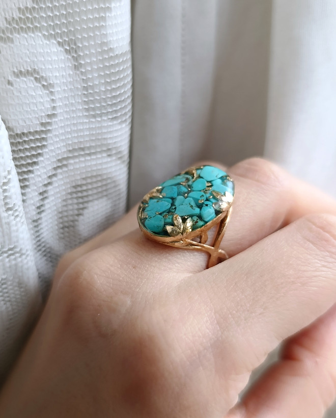 انگشتر زنانه فیروزه رکاب طلاروس خرید قسطی