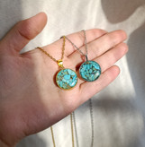گردنبند فیروزه طرح دایره ۲ cm با زنجیر استیل دیپلمات