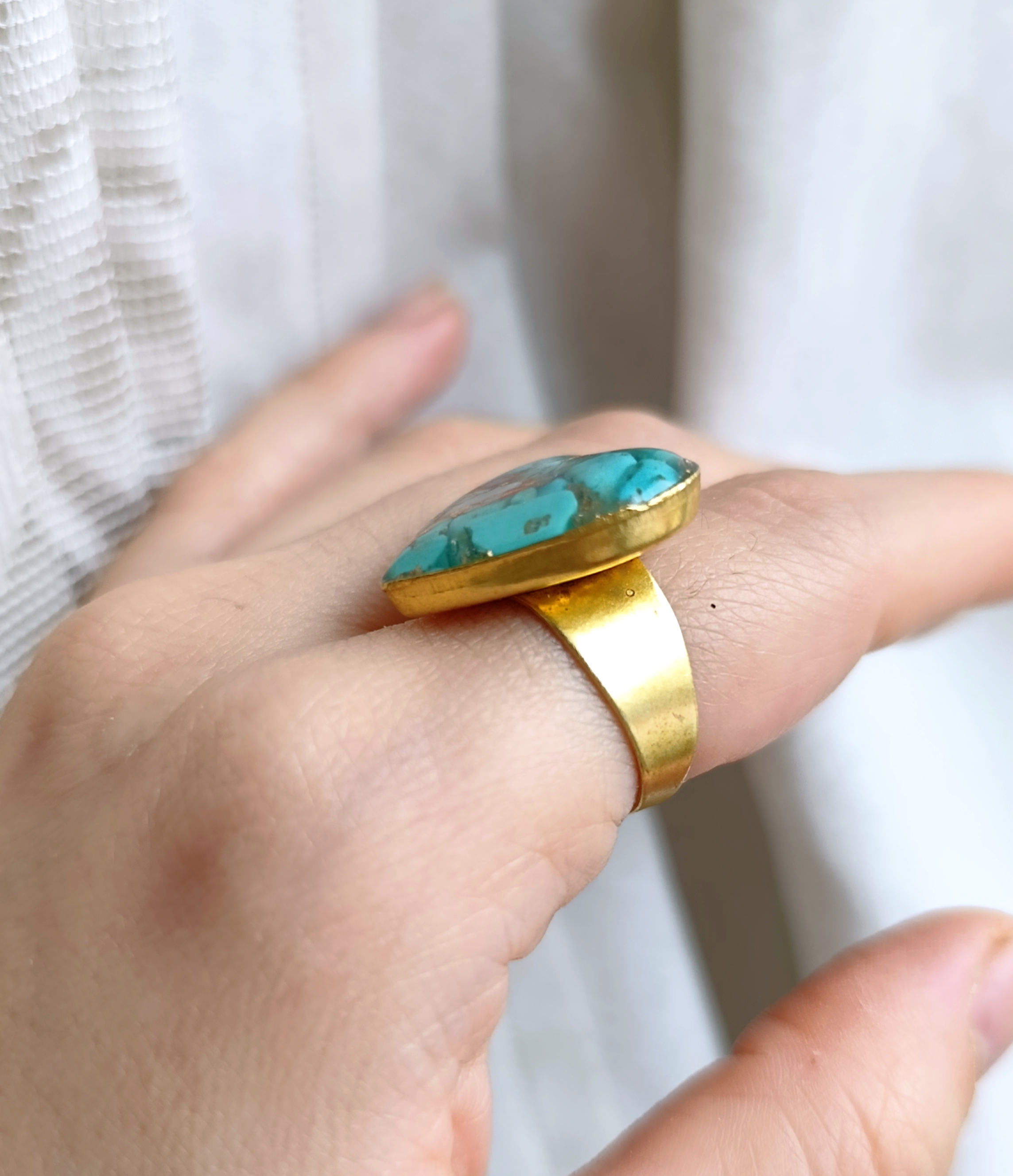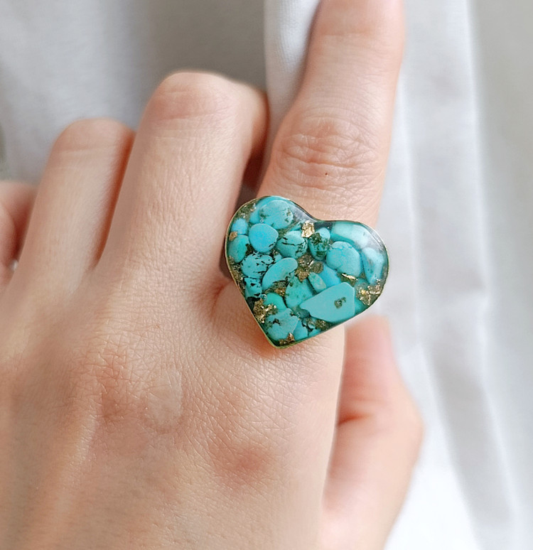 زیو آلات خاص فروشگاه عجم استور با خردهسنگهای فیروزه تبتی یا آفریقایی ساخته شده و با رزین شفاف فیکس شده تا جلوهای درخشان و ماندگار داشته باشد.