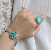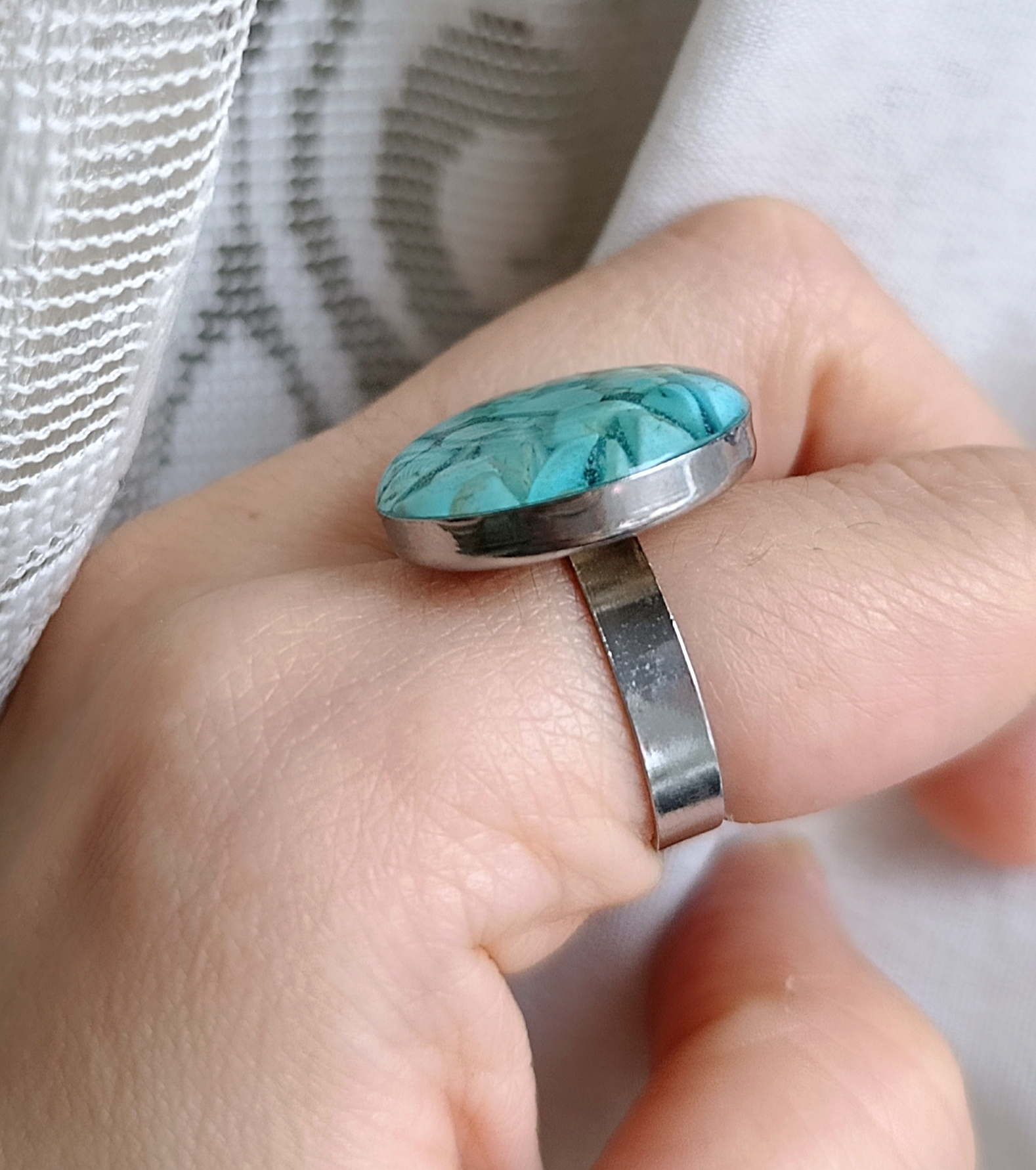 انگشتر زنانه سنگ فیروزه رکاب استیل نقره ای طرح دایره بزرگ