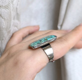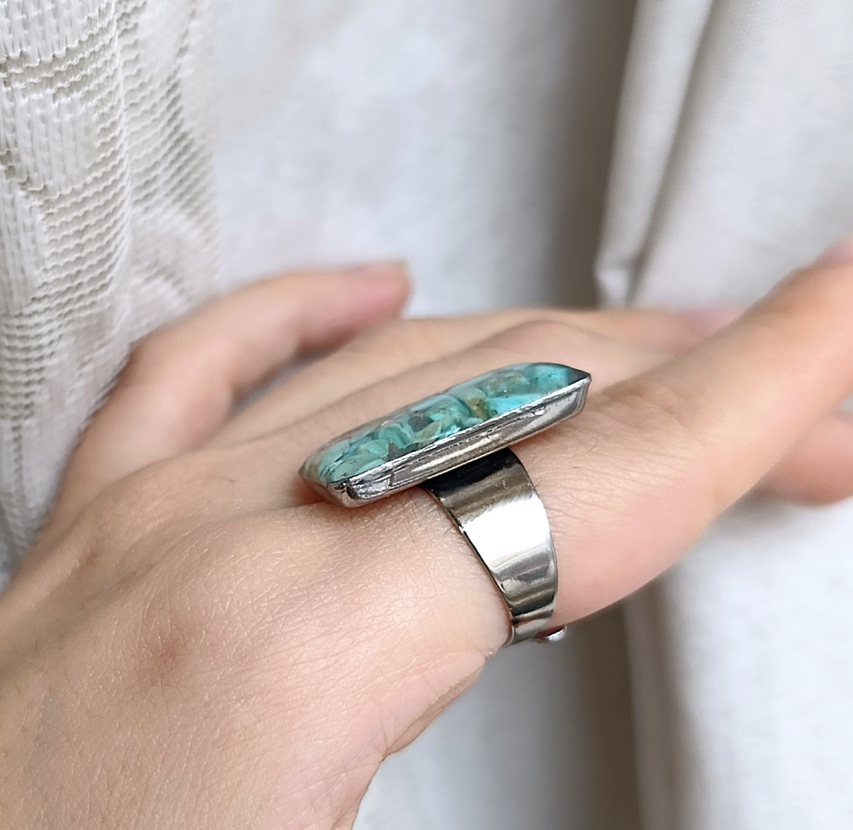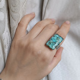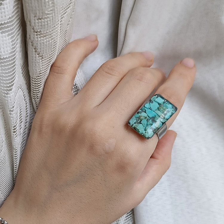 انگشتر زنانه سنگ فیروزه رکاب استیل نقره ای طرح مستطیل