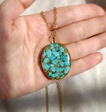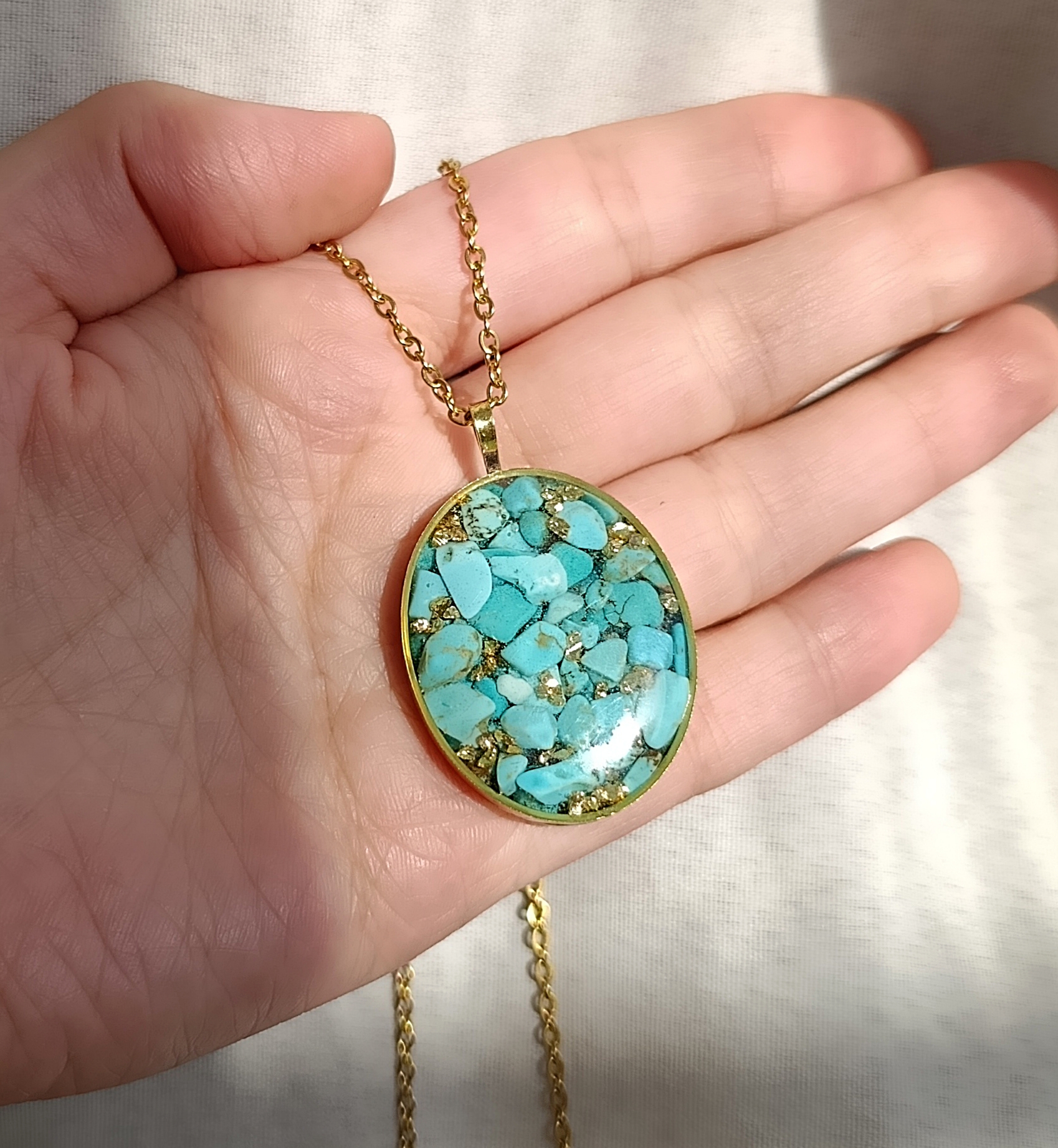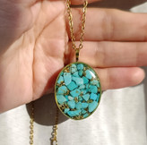 گردنبند طلایی فیروزه طرح بیضی سایز بزرگ با زنجیر استیل دیپلمات