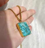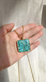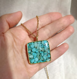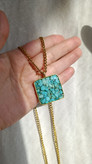 گردنبند طلایی فیروزه طرح مربع بزرگ با زنجیر استیل کارتیر و دیپلمات