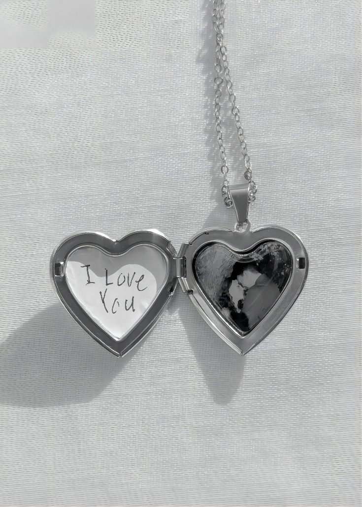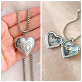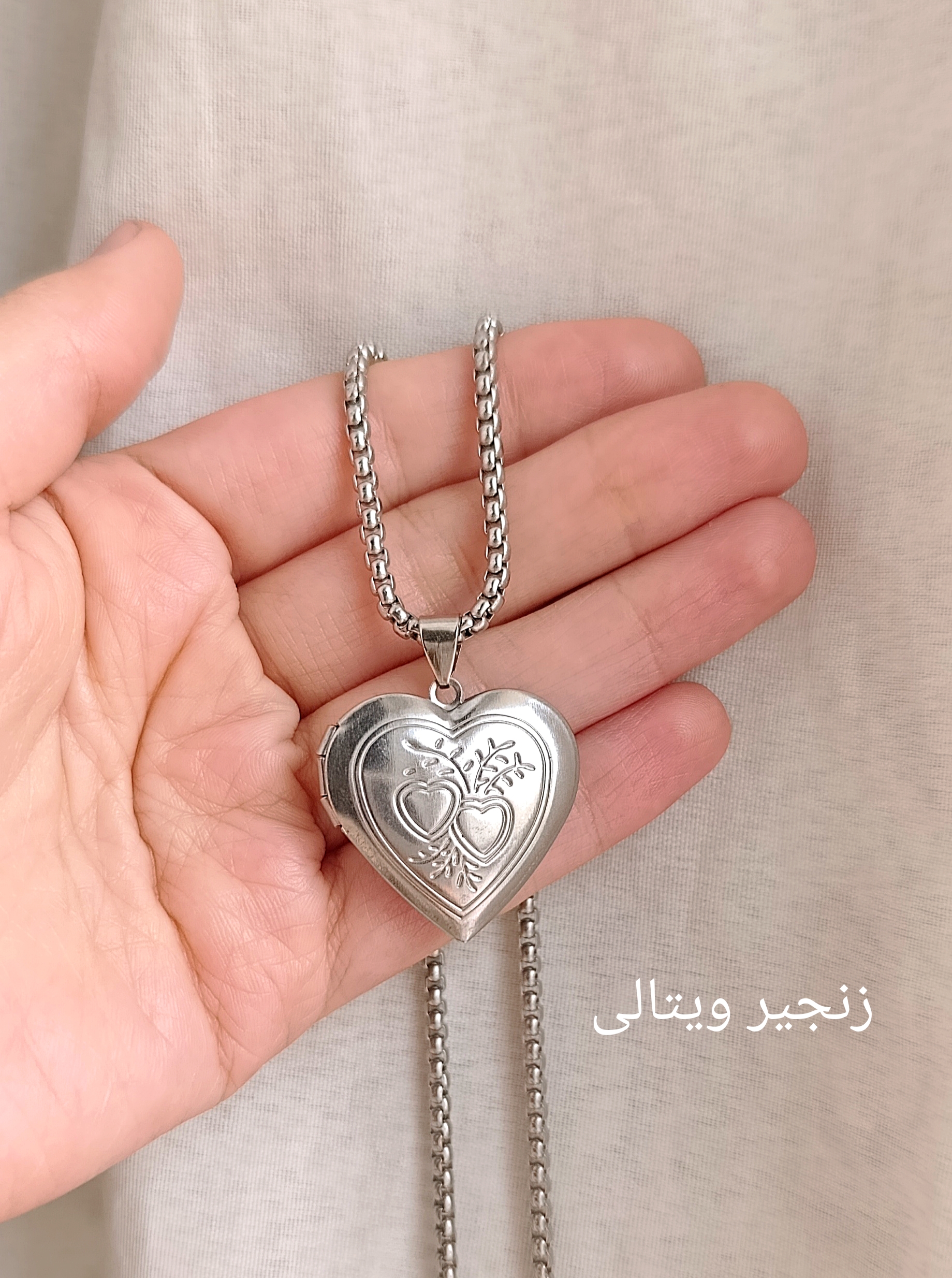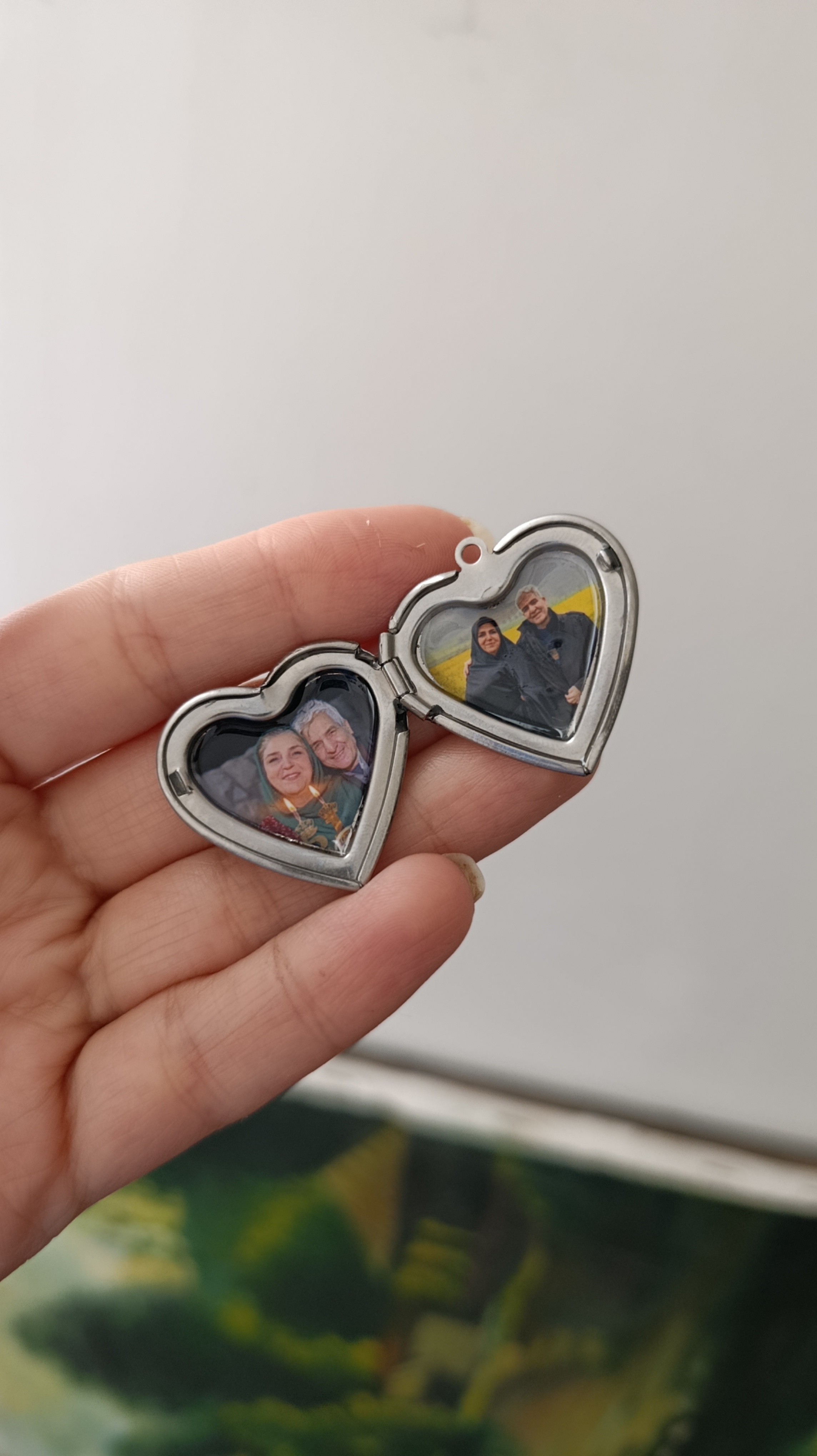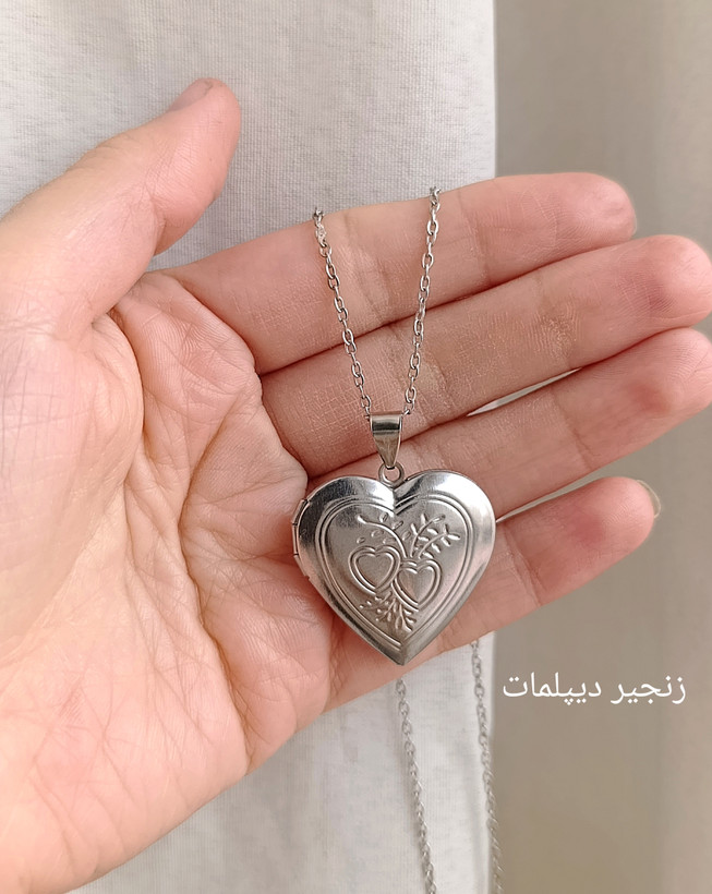 گردنبند لاکت استیل قلب نقره ای با چاپ عکس رزینی خرید قسطی