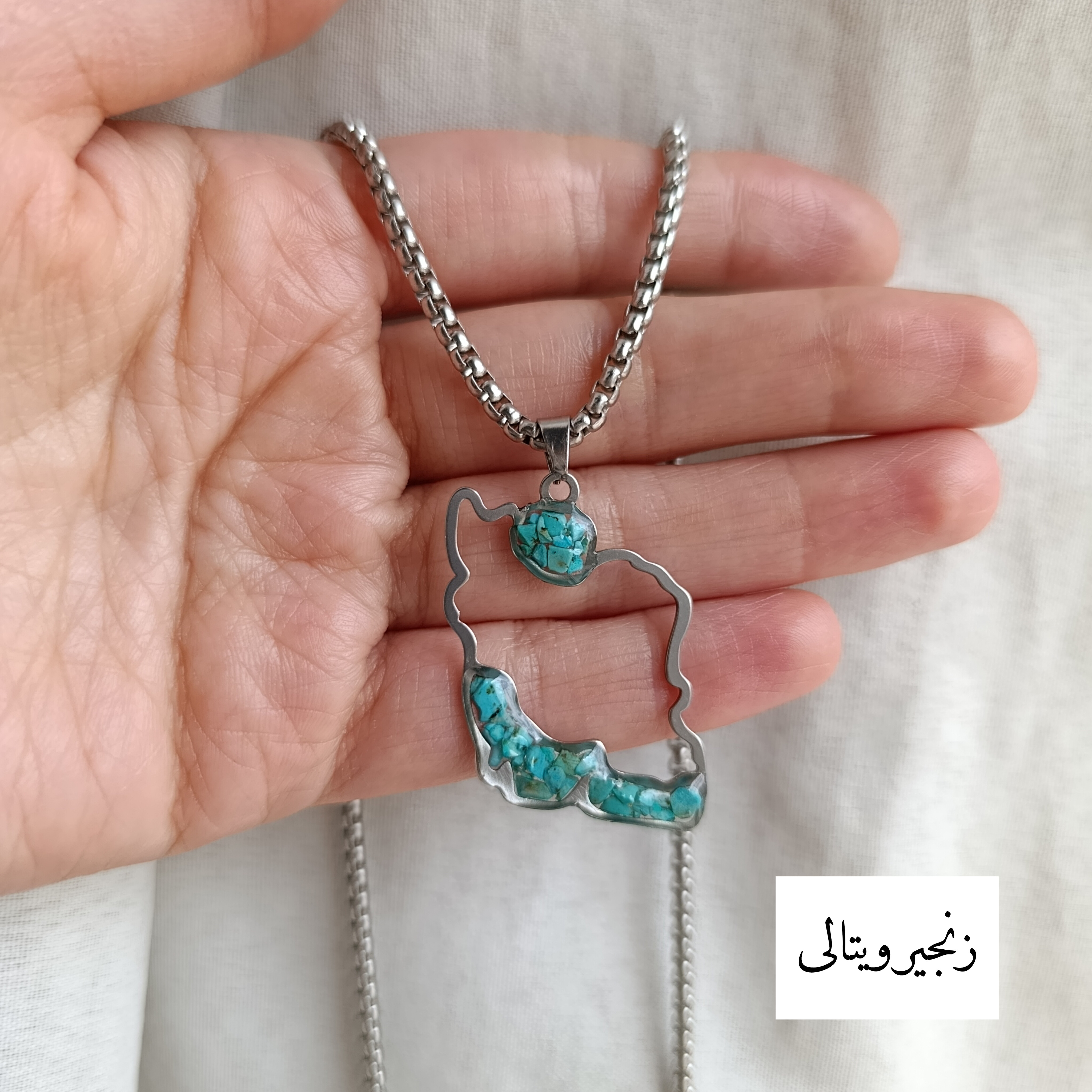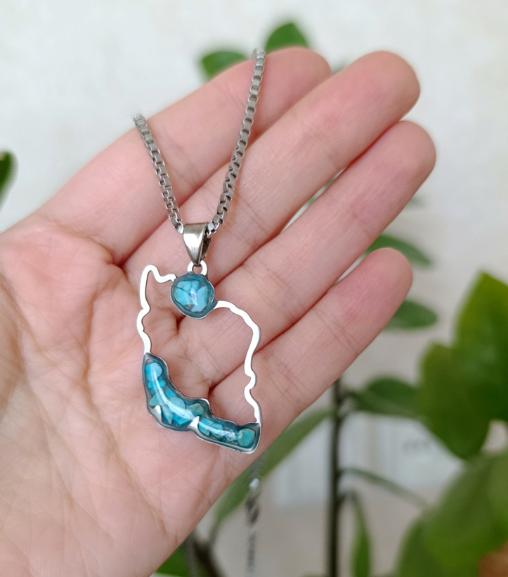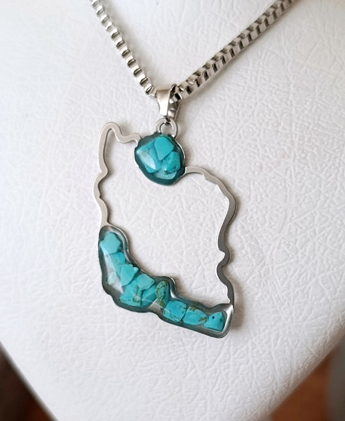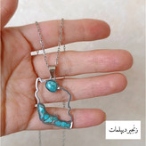 گردنبند استیل فیروزه اصل طرح نقشه ایران به همراه زنجیر
