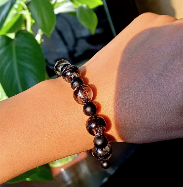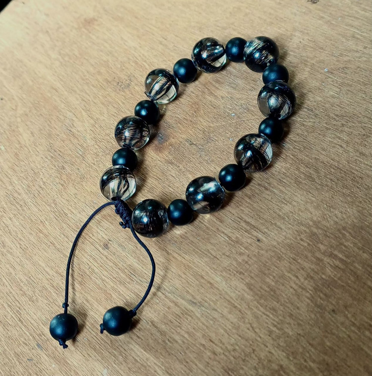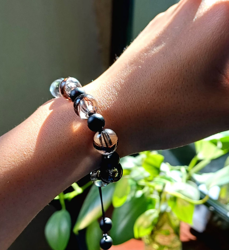 دستبند رزینی ترکیبی موی یار و مهره انکیس