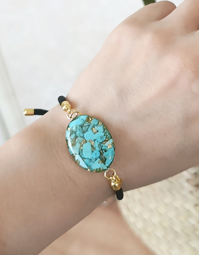دستبند زنانه و دخترانه فیروزه اصل بند نخی آسانسوری طرحبیضی
