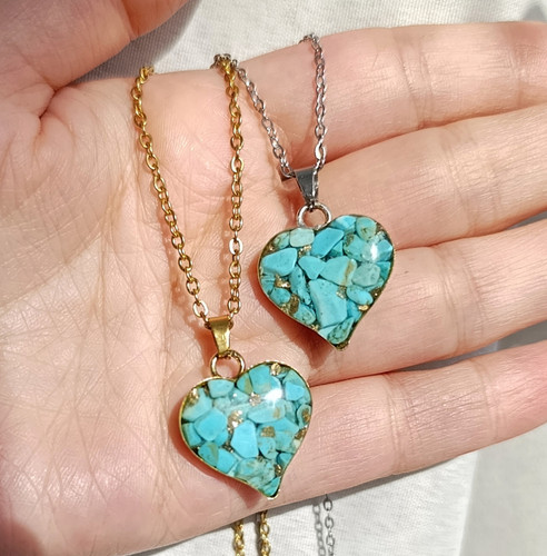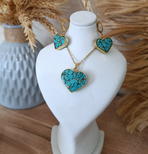 نیم ست قلبی سنگ فیروزه زنانه و دخترانه