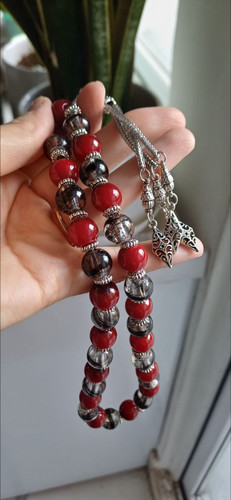 تسبیح رزینی موی یار و خون با آویز و خرجکار استیل خرید قسطی