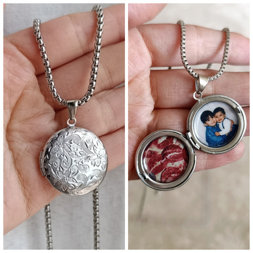 گردنبند لاکت استیل گرد نقره ای با چاپ عکس مدل دایره ساده خرید قسطی