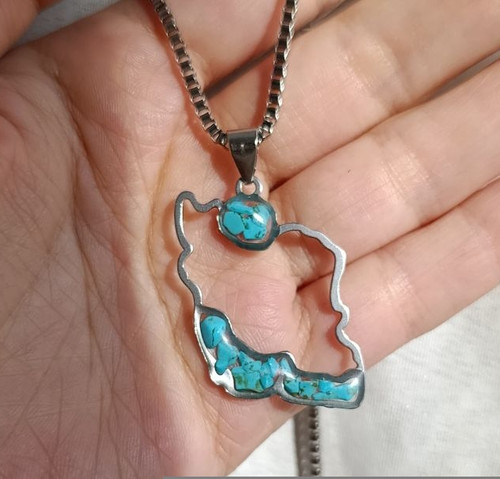 گردنبند استیل فیروزه اصل طرح نقشه ایران به همراه زنجیر