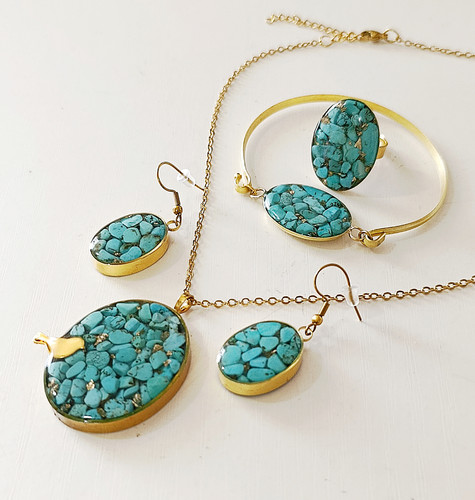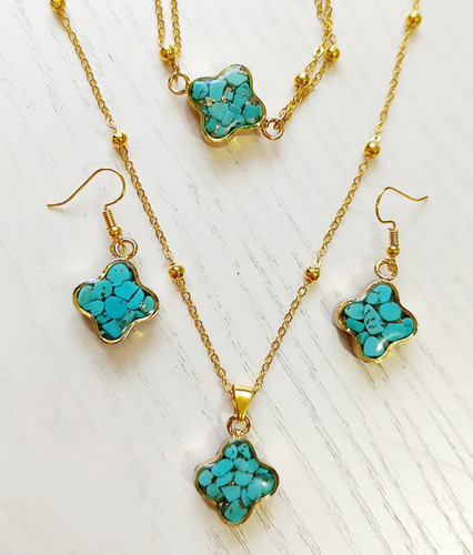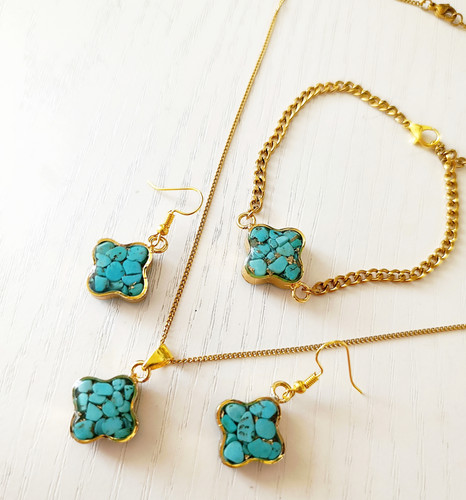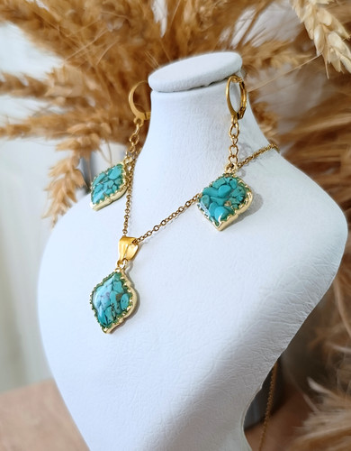 نیم ست گردنبند و گوشواره فیروزه