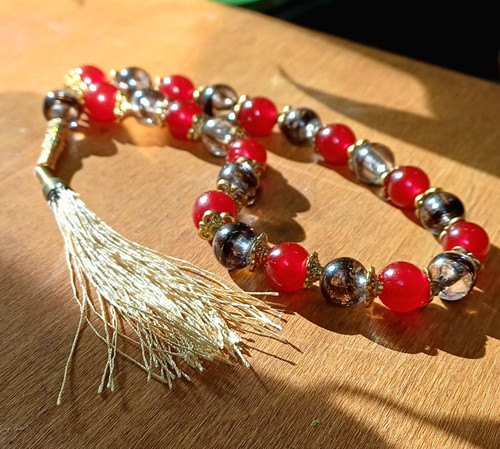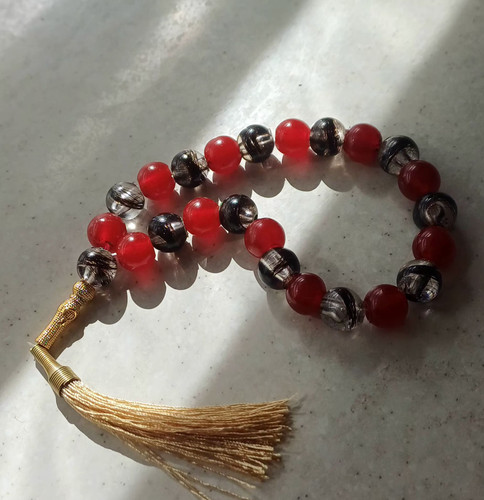 تسبیح رزینی موی یار و خون با آویز نخی خرید قسطی