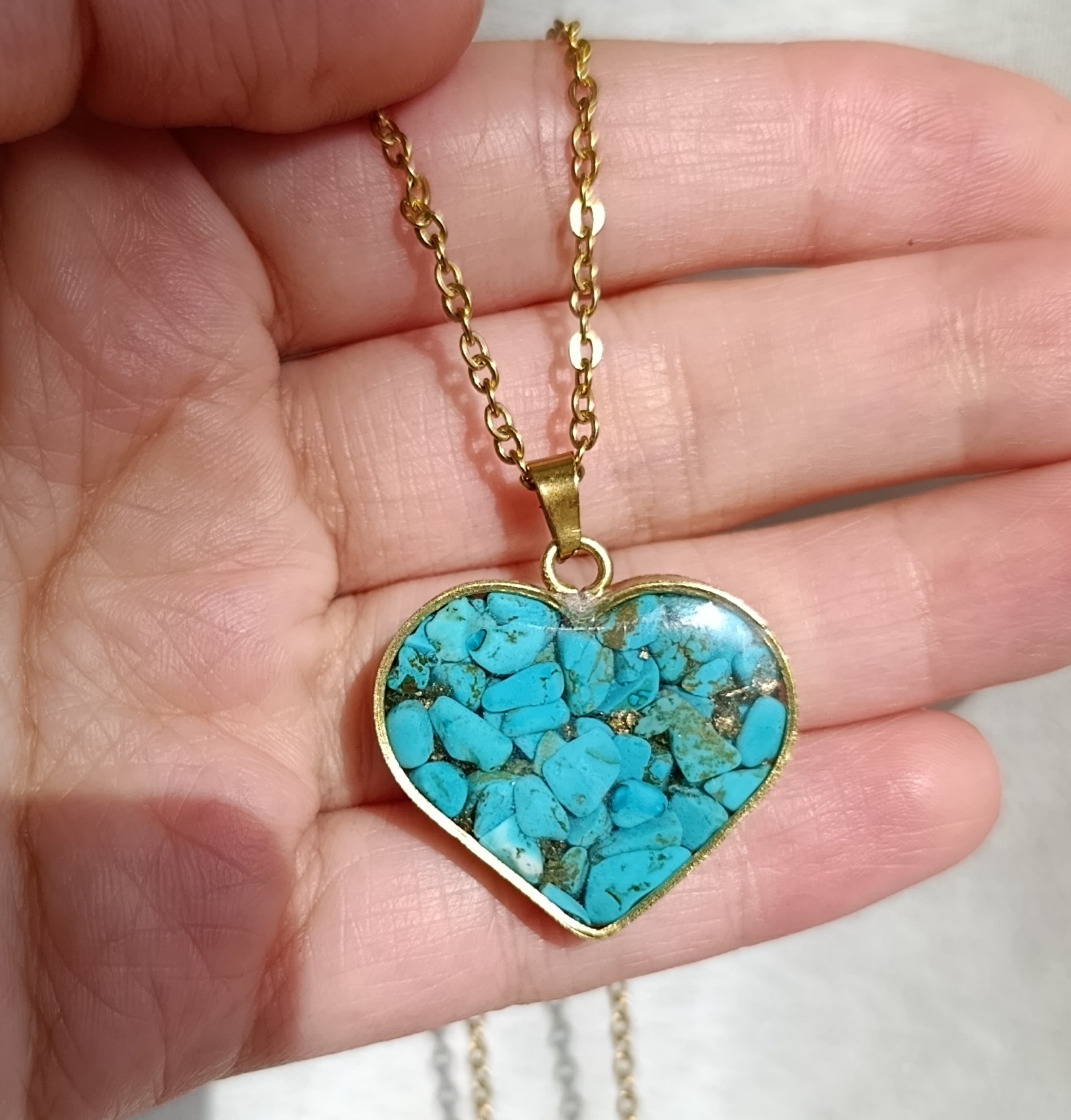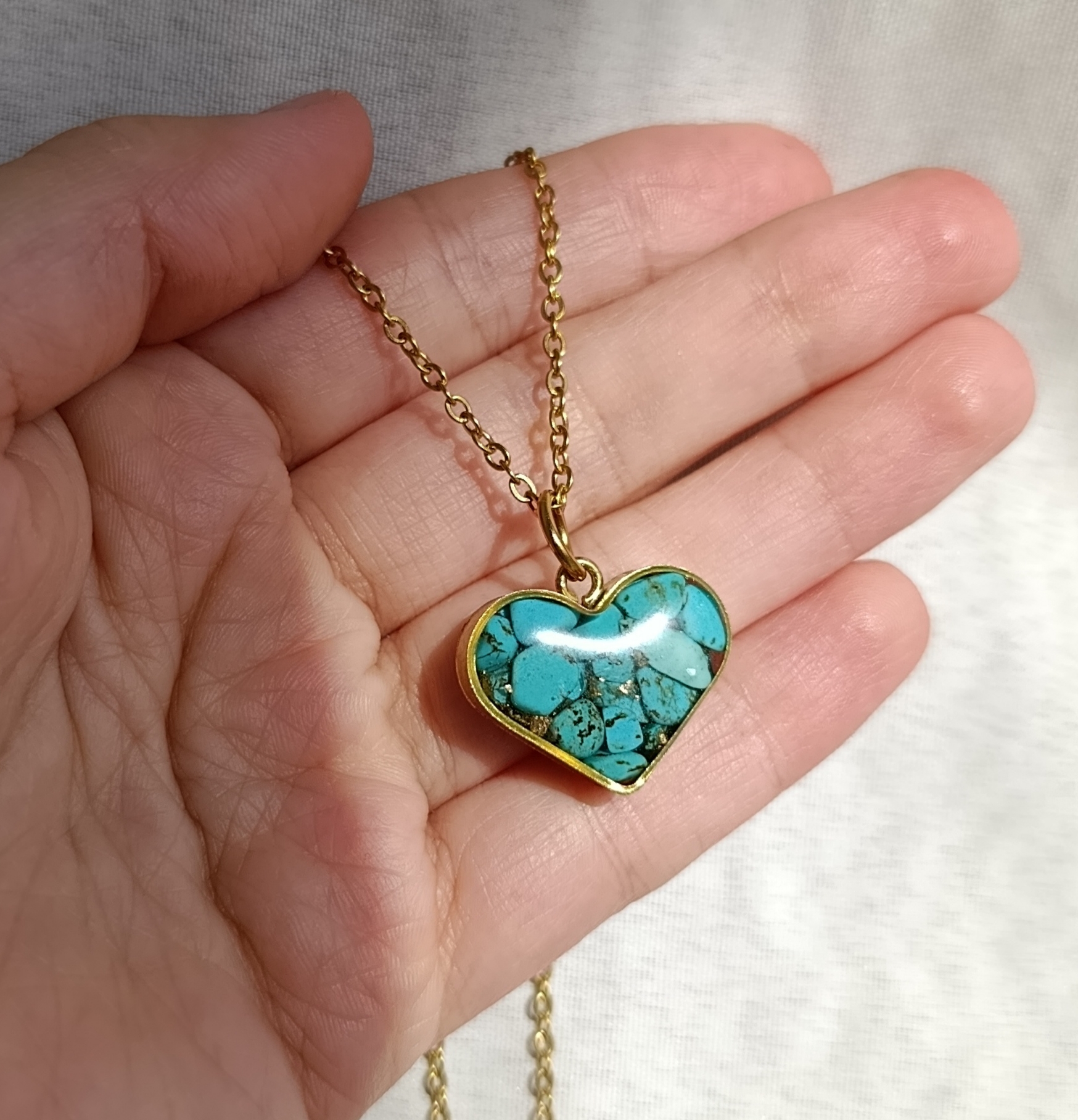 گردنبند طلایی فیروزه طرح قلب ۲ cm با زنجیر استیل دیپلمات