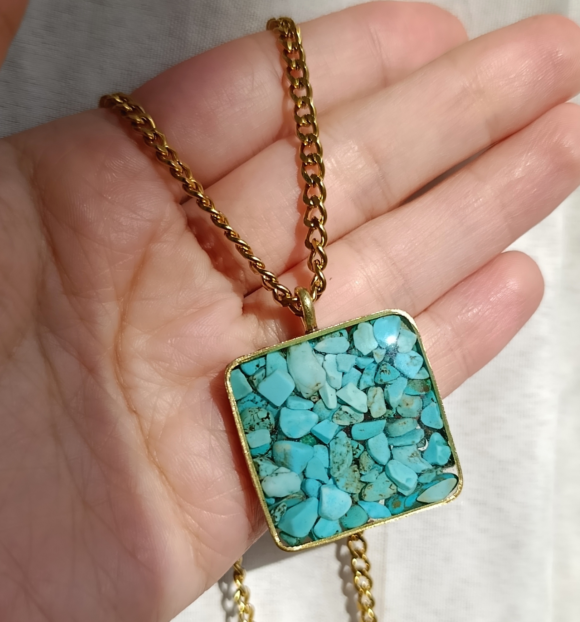 گردنبند طلایی فیروزه طرح مربع بزرگ با زنجیر استیل کارتیر و دیپلمات
