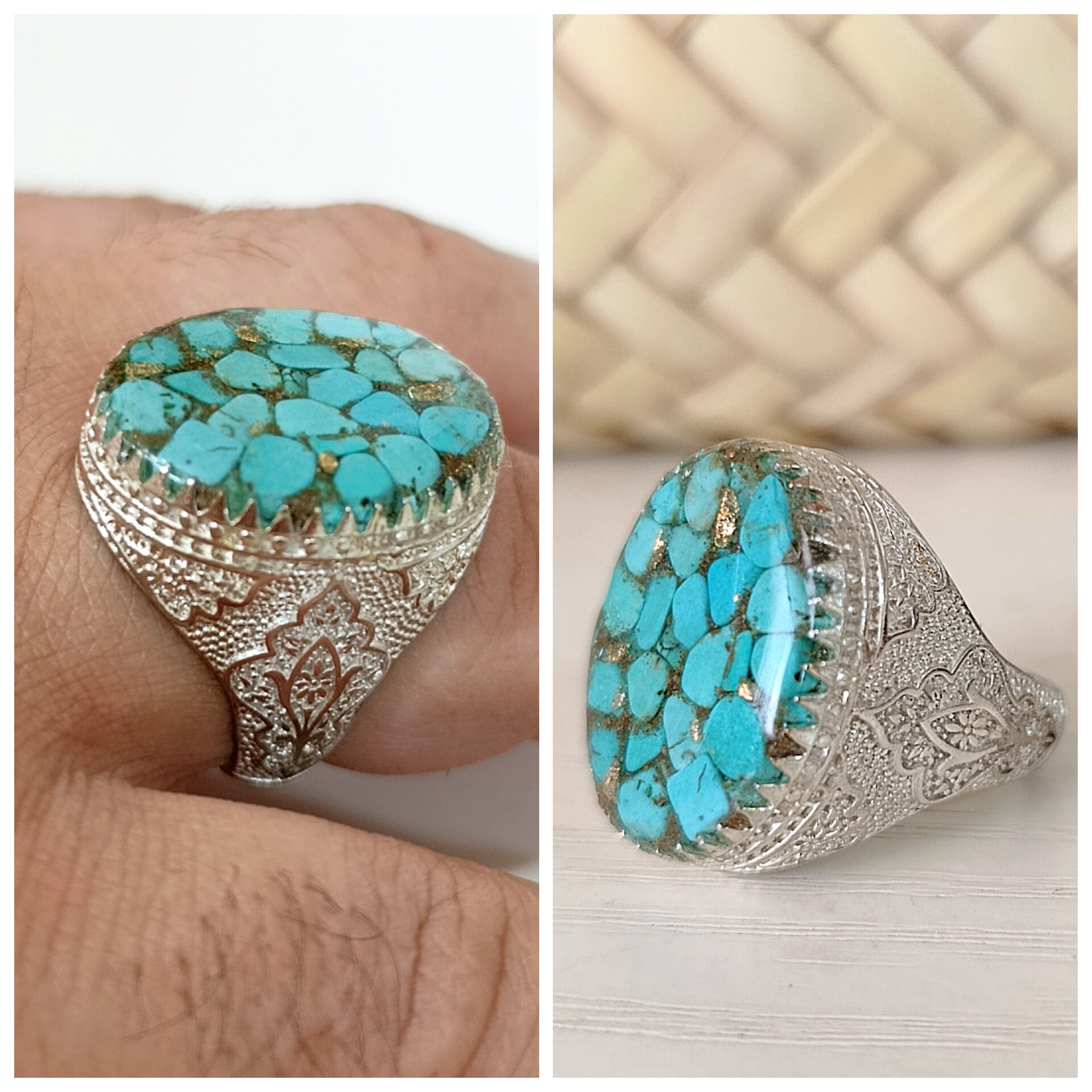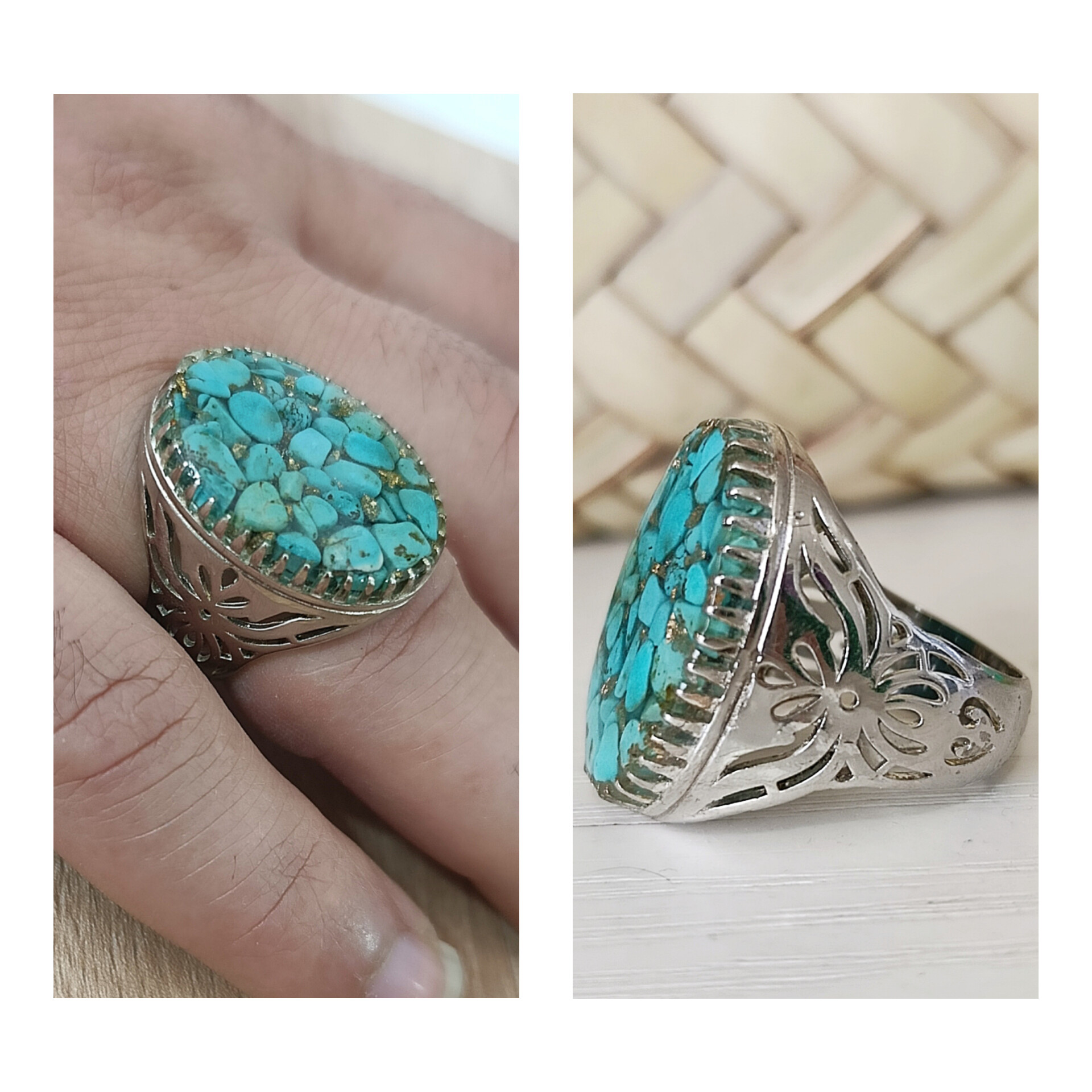 ناموجودانگشتر مردانه فیروزه رکاب روکش طلا سفید اصل درجه یک