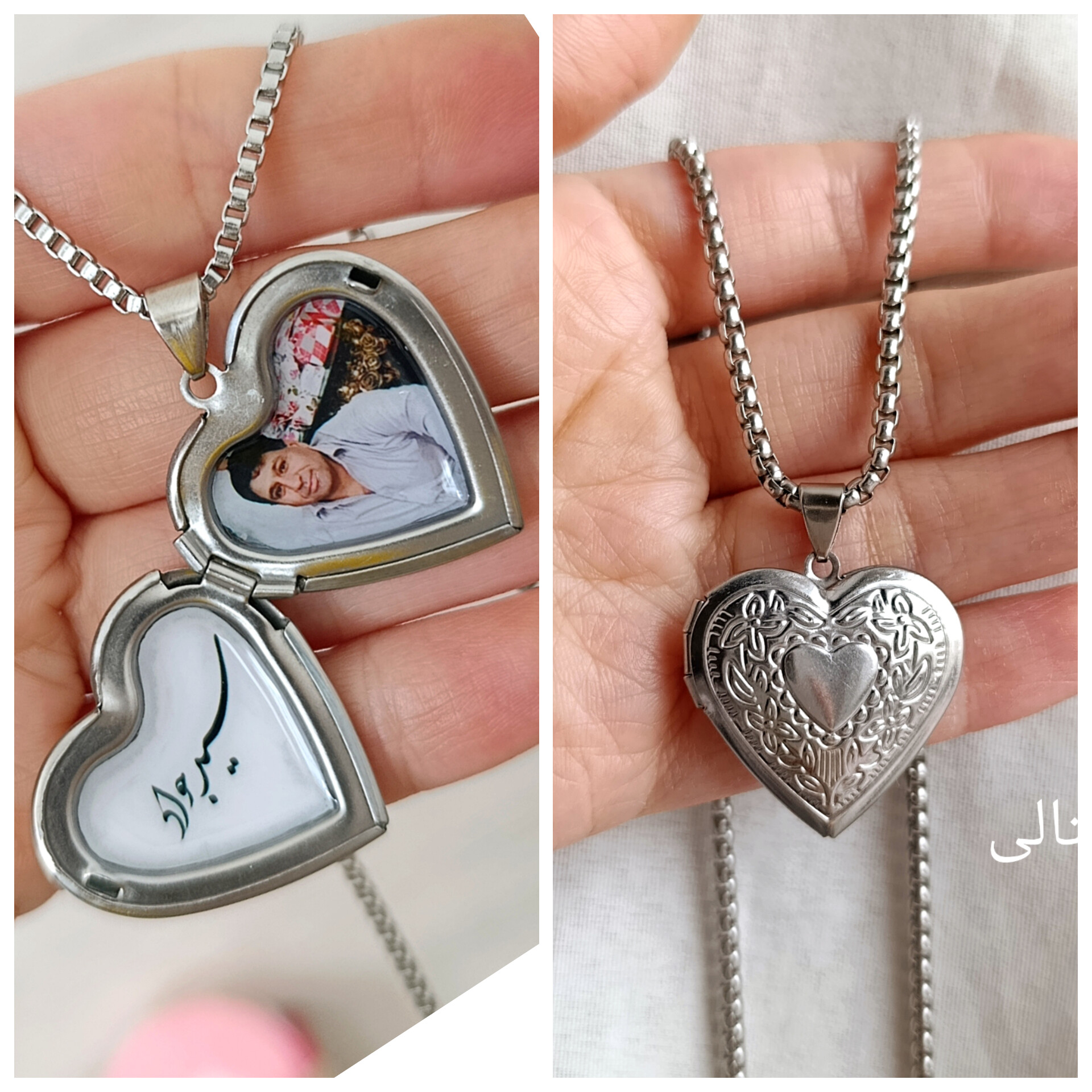 گردنبند لاکت استیل قلب نقره ای با چاپ عکس رزینی خرید قسطی